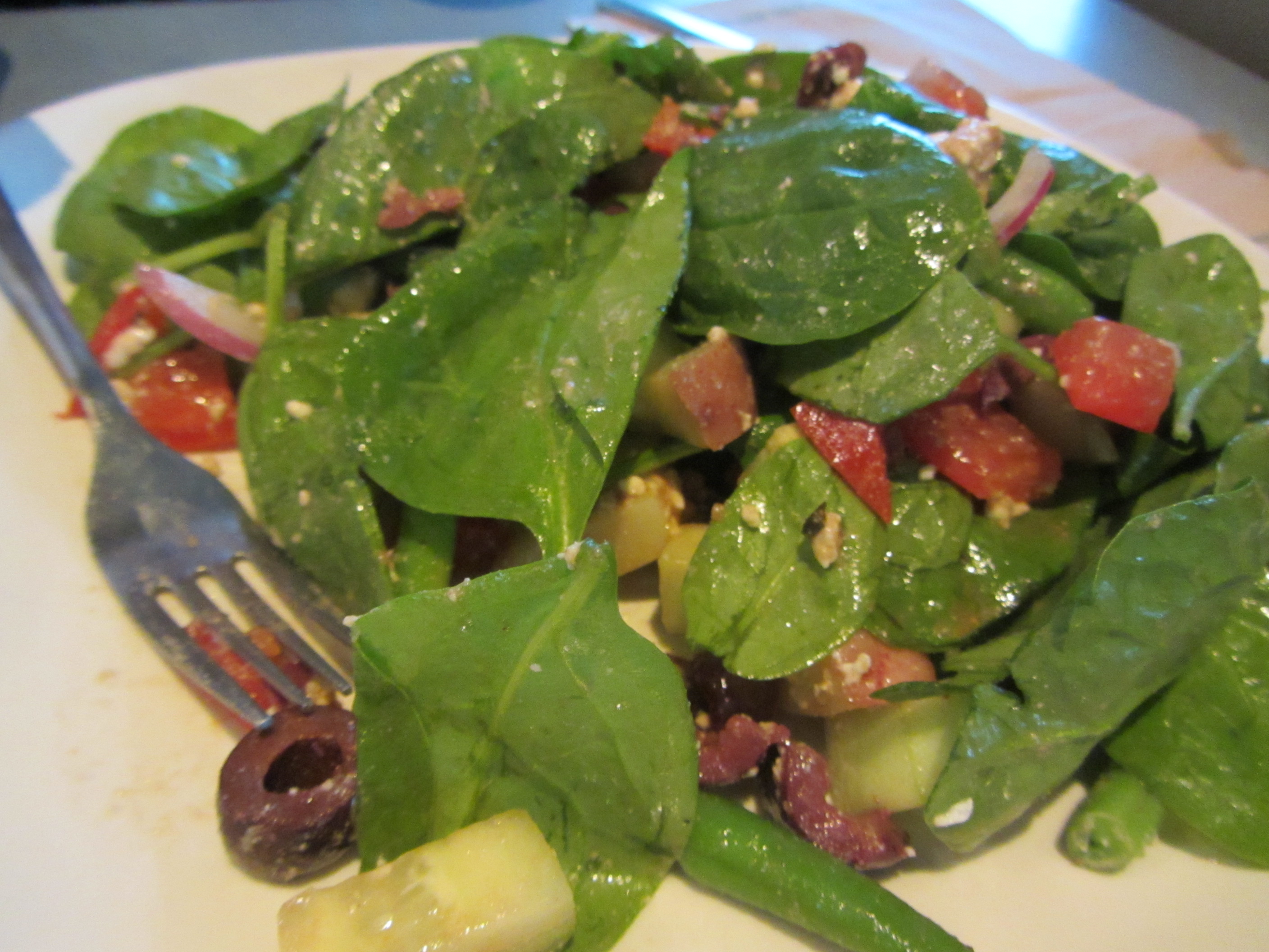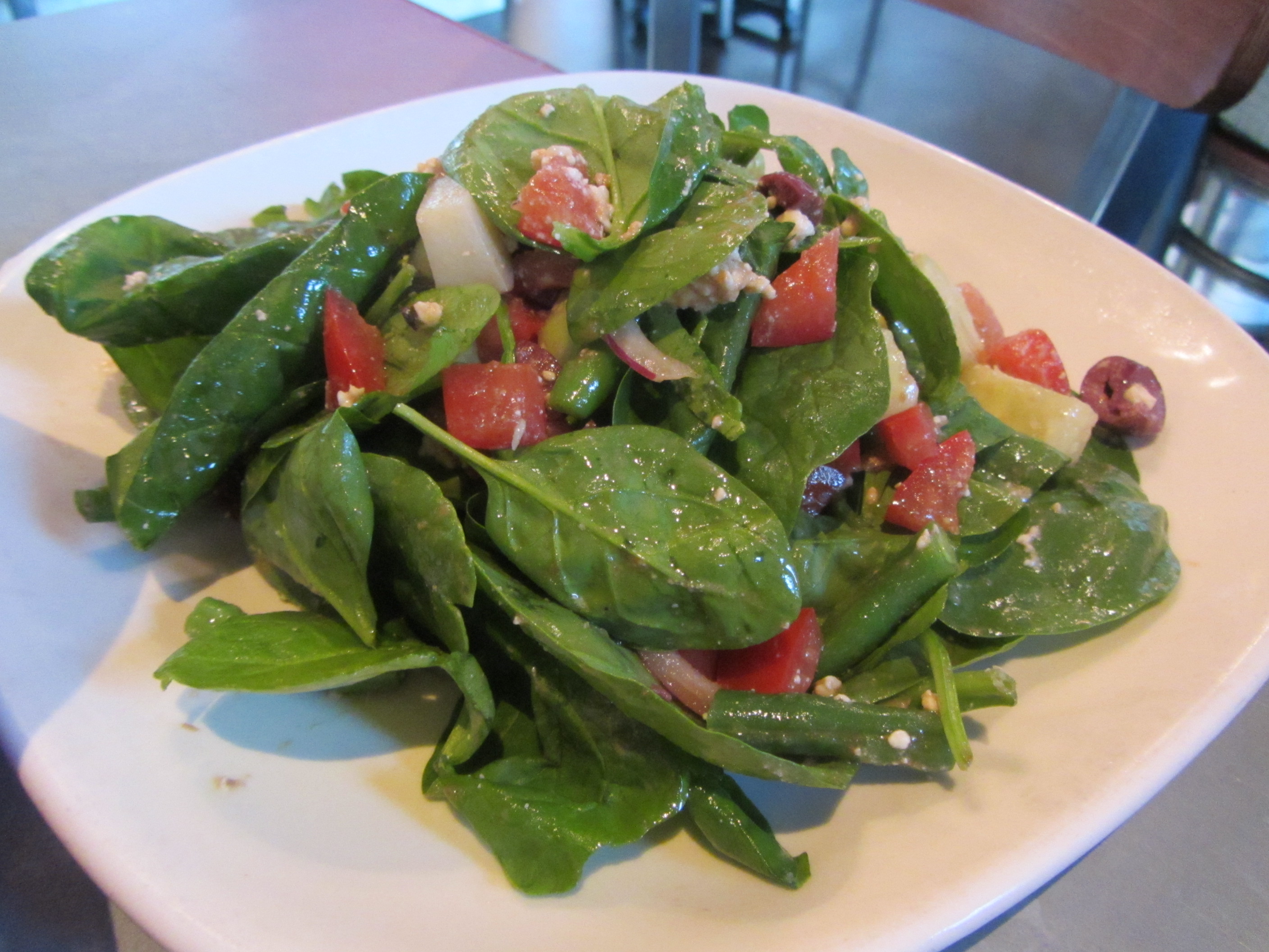 Mediterranean Salad - A Mediterranean spin on a hearty farmer’s market salad. Baby spinach is tossed with feta cheese, cucumber olives, tomatoes, green beans, red onion, red potatoes and lightly coated with a herb balsamic vinaigrette. I really liked how this salad was balanced with ingredients, as a result the texture and flavors all played well together. The ingredients were all extremely fresh and vibrant with flavor. This salad can easily be a meal, even for the Hungry Men out there.