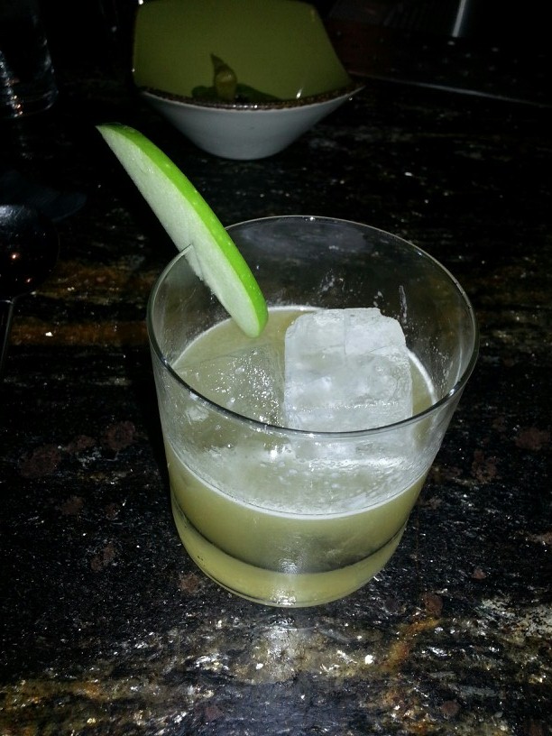 Bushel Cocktail is a lively mix of Jameson Irish Whiskey, Appleton Rum, Pomme Eau de Vie, toasted pecan, bitter cinnamon syrup and lime. This cocktail has a nice mix of sweet, woodsy, nutty, and spicy flavors. The flavors in this cocktail provided a rush of Thanksgiving dinner flavors! I am sure the pilgrims would have served this cocktail to their guests. This is a nice drink to sip with your lover while nuzzled up in a blanket.