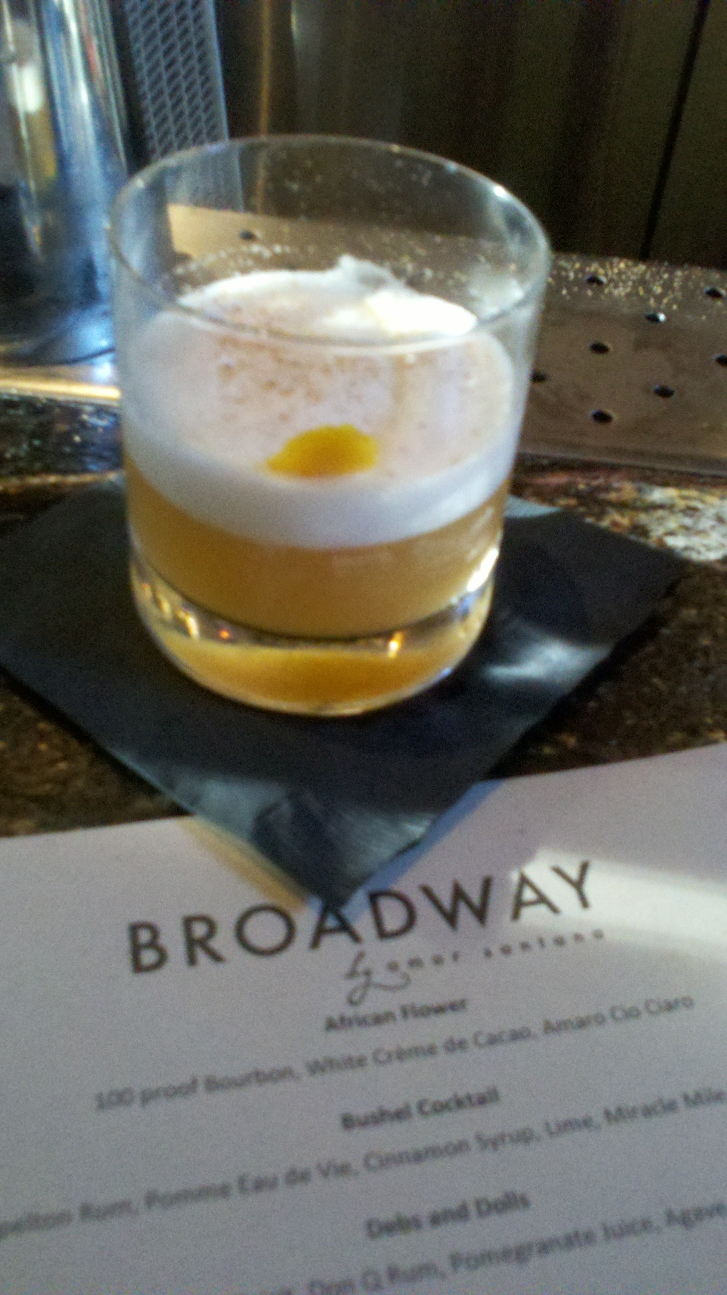 Some great fall cocktails are available at Broadway by Amar Santana starting October 5th. I really liked Bartender Ricky Yarna’s creativity and nod to prohibition cocktails. I am a firm believer that a restaurant should allow their chef’s and bartenders to innovate the menu by letting them practice their craft. Testing the customer’s limits is what makes for a great dining experience. If you get a chance, I would recommend that you try to take your date to Broadway for a drink and dinner — let me know if these cocktails makes the magic happen.