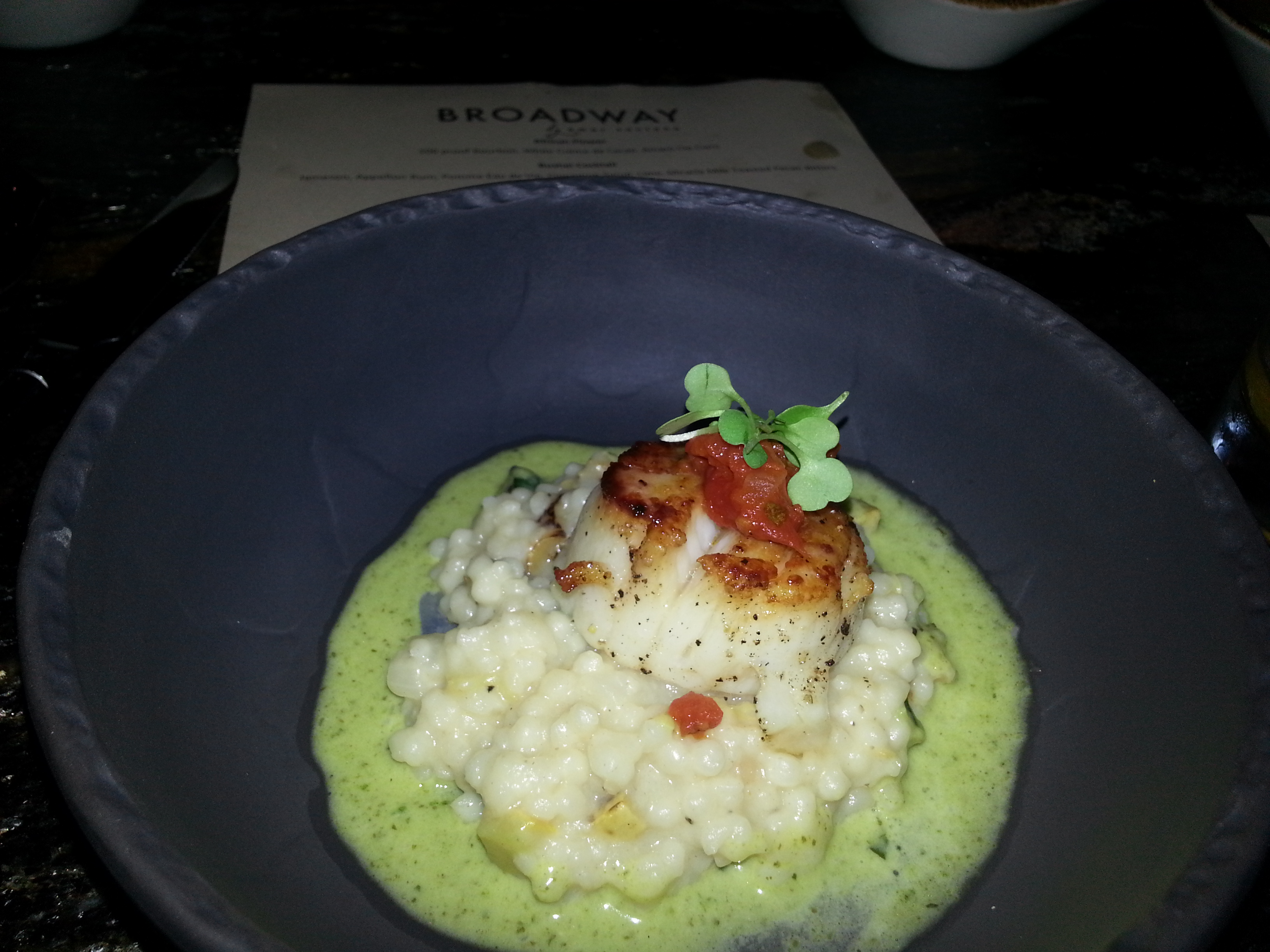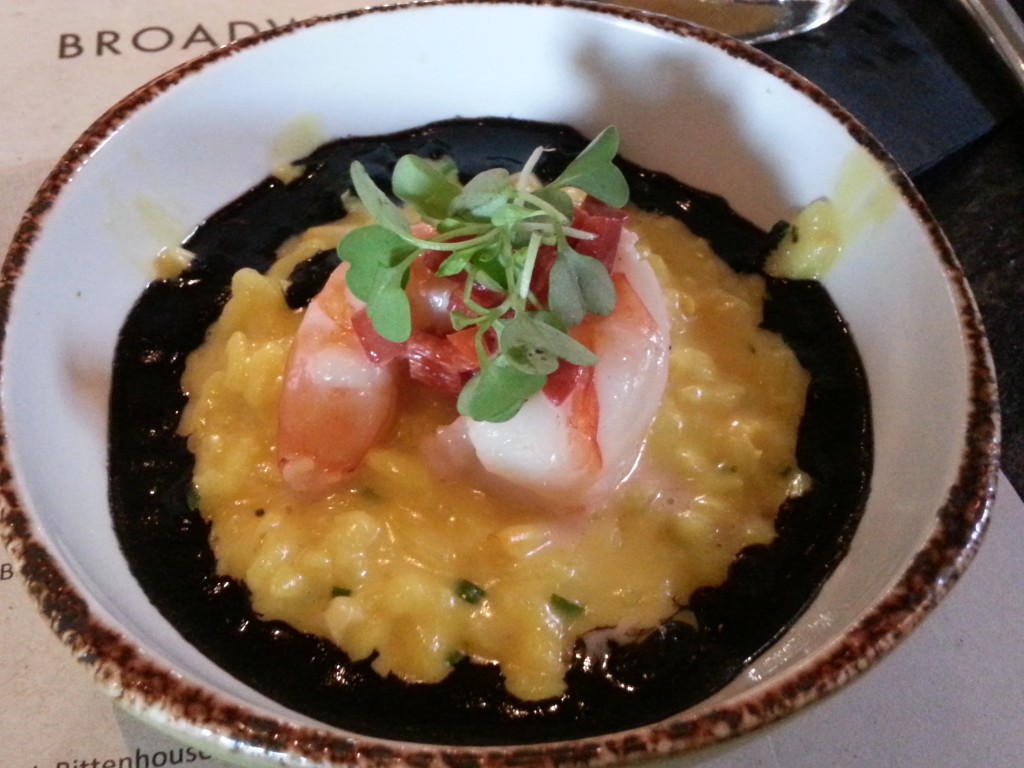 Buttered Poached Shrimp served atop risotto with roasted corn sea urchin puree. Don’t be afraid of the sea urchin puree. It is a beautiful dish, but not as hot as the girl next to me drinking an African Flower.