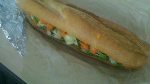 My Group ordered one of each of the sandwiches and the fries. Overall the food was good and a good value. The Sandwiches all used a 8 inch piece of crunchy on the outside and moist on the inside French Baget. All the Sandwiches were typical Vietnamese sandwiches with the chunky cut carrots, shaved onion and liberally applied Cilantro and hidden landmines of peppers. The meat in the sandwiches were high marinade and delicious, but there was definitely not enough meat. A few more chunks per bite would have made me happy. The Vege sandwich a same extra lettuce and other random veges. My co-worker Gaurang thought it was pretty good as far as Vege sandwiches go. I gave the “O-Truck” and their sandwiches a 3 on my scale of 1-5. A ranking of “3” means that I would order it again, but would not go out of my way to tell family and friends.