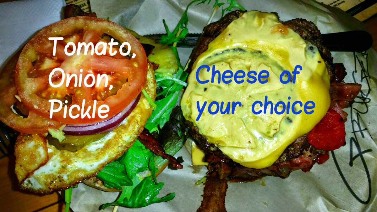 The third section contained your standard vegetables (pickles, red onions, tomato slices) and your choice of cheese. I selected the very standard American cheese. Most burgers stop here.