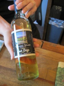 flavors of apple and tropical citrus fruit. This medium boddied and fruit-forward wine had a clean, crisp finish. The Pinto Grigio Grape (white grape clone, based on the Pinot Noir) is also well-suited for this cooler weather and volcanic soil. Their base Pino Grigio was similar to Oregon wine