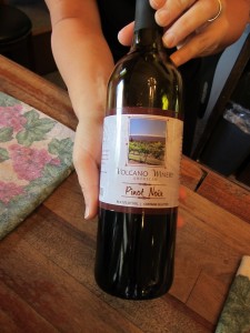 Aside: How does volcanic soil effect the flavor of wine? There is a scientific theory called “terroir”, which states that the character of the soil is most responsible for the character of the wine. Volcanic Soil is very alkaline, for example, and tends to impart the flavors of Big Cherry, berries and accents of flowers, spices into Pinot Noir.