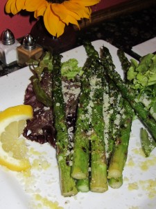 We started with their locally grown asparagus which was steamed, grilled and covered with parmesan cheese and spritzed with lemon juice. The asparagus was actually very tasty with a nice crunch and very fresh flavors. I liked the combination of parmesan and lemon juice over the asparagus and actually did this when I returned home. The other items on the appetizer list included such options as meat/olive plate, duck, sautéed green beans.