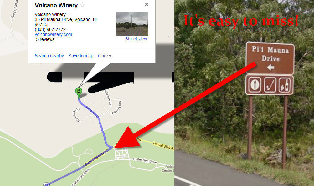 To find the volcano winery just drive along Highway 11 (Highway Belt Road) and turn onto Pii Mauna Drive. The signs are very small and there is only a picture of a wine bottle to mark the winery (the National Park Service is very restrictive with signage). If you hit the volcano you went too far. Be sure to tell them Tom’s Foodie Blog sent you.
