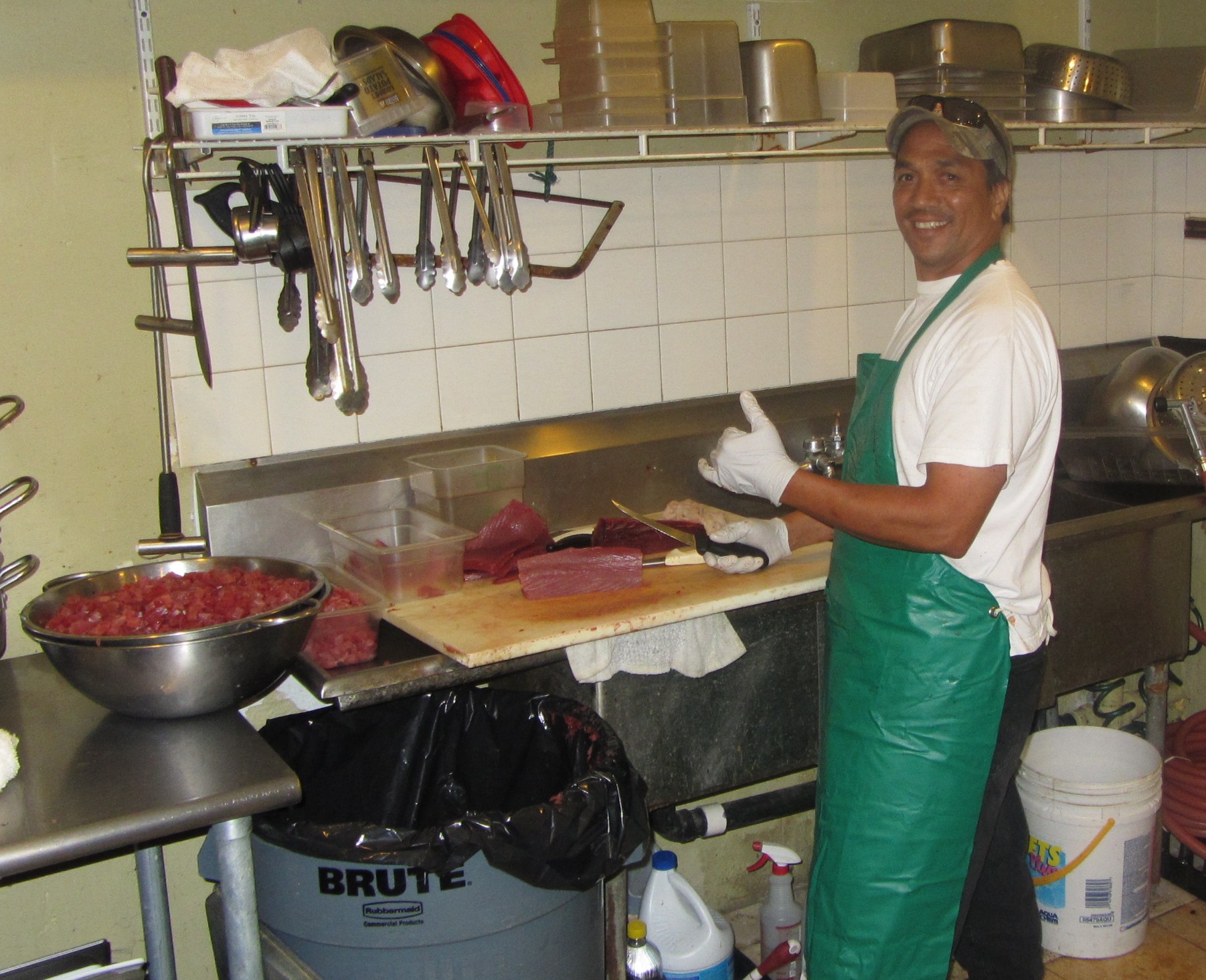 At the prompting of the cashier, I opened an over-sized cooler to find two 100-pound yellow fin tunas, which still had clear eyes and pink gills — I swear it was still moving a little. Don’t be squeamish, this is the circle of life and fish protein always tastes best freshout of the ocean. While I was ordering, they were still butchering one of the larger fish! I have never seen a whole 100-pound tuna being cut down with a saw and butcher knife. It was a cool experience to watch: every piece of the fish being accounted for (nothing goes to waste!).