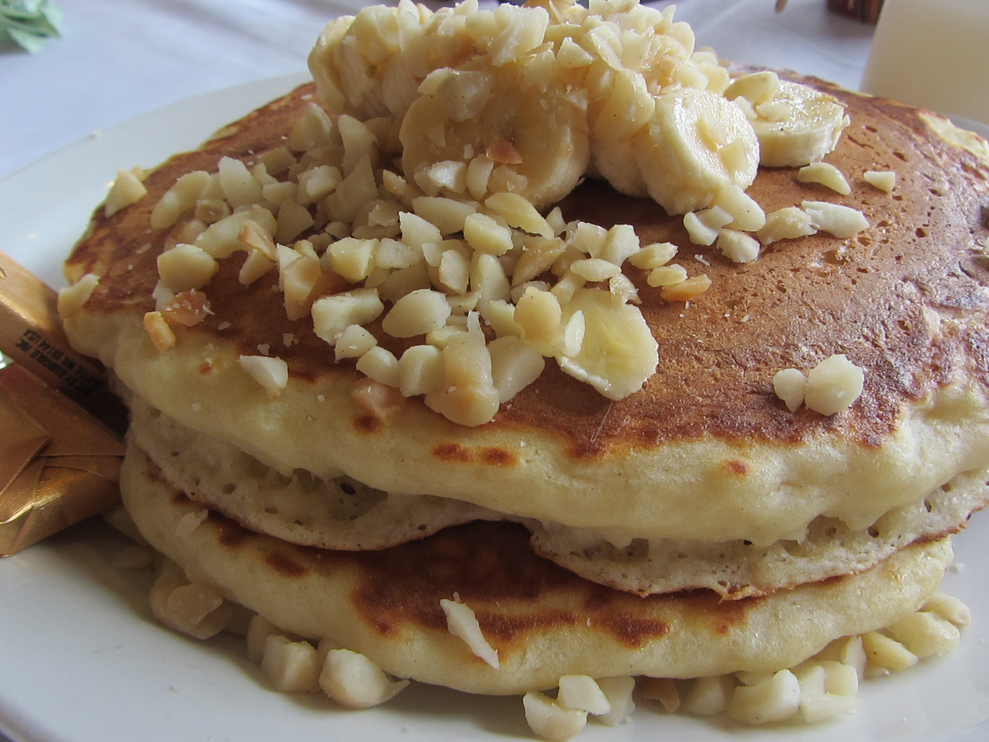 The macadamia nut pancakes were fantastic; nicely browned and aerated fluffy. They were festooned with locally grown macadamia nuts. This dish added a mellow sweetness to our meal and kind of acted as a desert for our breakfast.
