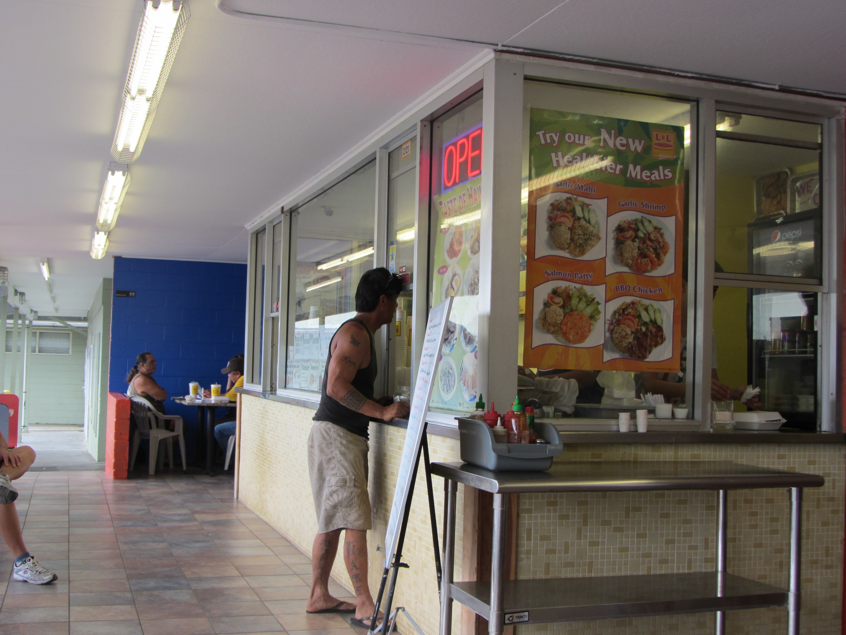 All jocularity aside, I had just come out of the jungle near Captain Cook and was looking for something quick and convenient before heading north. Like an oasis, L&L BBQ appeared on the side of the road. I was in luck: they served Oxtail soup, one of my favorites. In fact, this was the only place that I saw oxtail soup on the island. Even some of the locals looked at me with an approving nod as they saw me rip the meat of the tail bone with my teeth, fat and all.