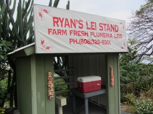 Some of the best fruit comes from farmers who sell their fruit and vegetables via the “honor system” from the side of the road. We stopped three times for roadside goods: once for passion fruit, once for papaya and once for leis. Yes, I got lei’d on the side of the road by my wife…hehe. The bad part is that she tried to make me wear it around town, but I refused….