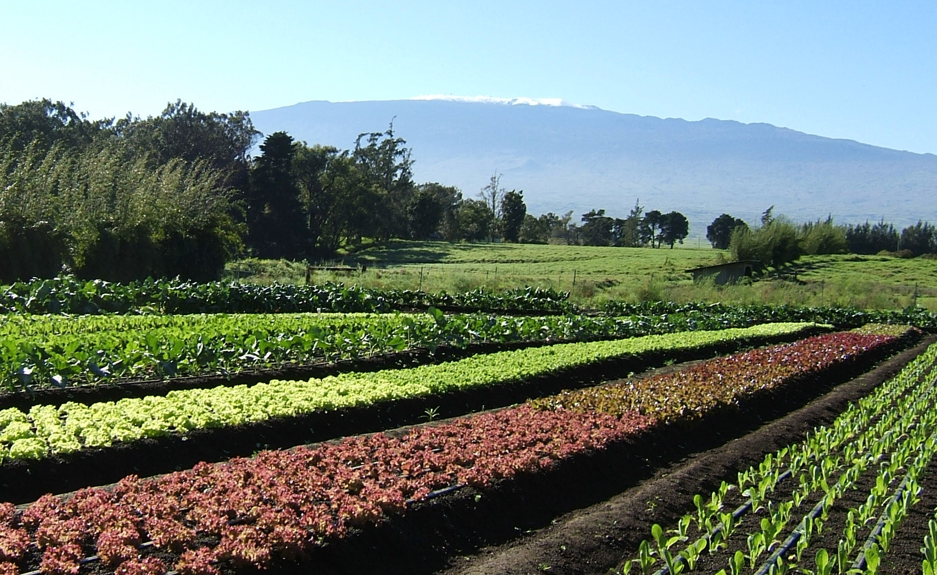 “The Big Island, Hawaii is endowed with a varied climate, tropical and temperate, and wide varieties of tropical and temperate vegetables are grown on the island. It produces over 80% of the state’s head lettuce crop, 70% of the Chinese cabbage and celery crops, over 50% of the daikon crop, 36% of the cucumber crop, and 20% of the tomato crop.”