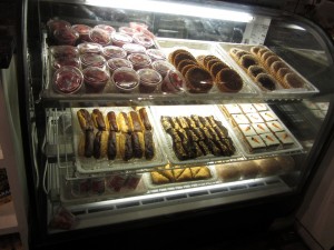 The coffee shop was literally shaped like a tunnel on the inside with brick walls and painted ceilings. When we walked in, there was a long line of people waiting to place their order. This was a good sign! The menu featured a full espresso bar, fresh pastries and impressive hot breakfast items. The coffee shop was structured so that you wait in line to place your order and then a
