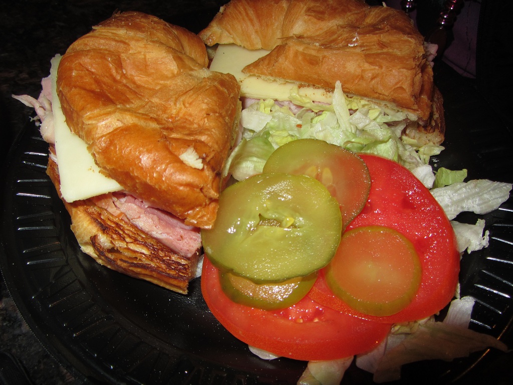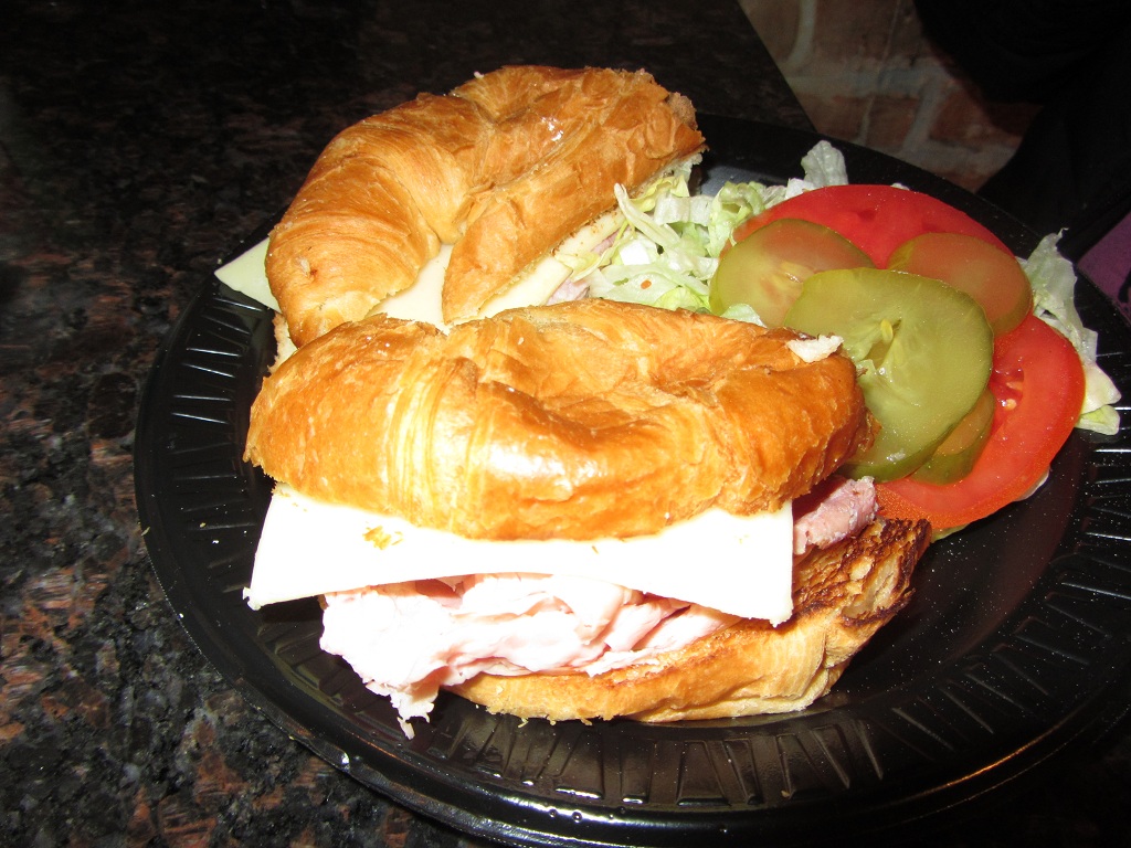 As always, food on Daniele’s plate looks better after she is almost done, so I finally took a large bite when she left the table for a napkin. She came back and took one look at me with a mouthful of her sandwich and her Royal Croissant almost all eaten.