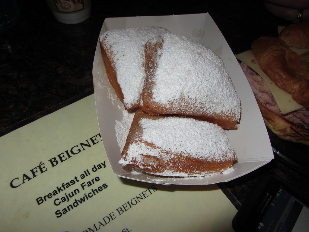 When my beignet arrived at our quaint café table, I was ready to devour it as it looked like a fluffy pillow dusted with powdered sugar. I broke into the beignet and the interior was fluffy, and created a geyser of steam. The flavor of the beignet was sweet and slightly rich from the oils used in the deep fry, very similar to a high-class donut. Café Beignet provided three large beignets in a single order, very generous when you compare with some of the other beignet restaurants. (my wife was hoping they would serve different flavored jams with this dish for ultimate flavor)