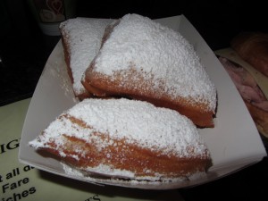 beignets! This iconic dish of New Orleans can be found in almost every restaurant in New Orleans and probably a 500 mile radius around the crescent city. For those of you who are unfamiliar with this treat of the gods, let me explain. The French translation for Beignet is, “Bump”. A beignet is made by creating a light fluffy pastry called, “Choux,” which is formed into squares or balls and deep fried. The deep fry process makes the Choux Pastry puff out as it cooks in the hot oil. As a result, the exterior forms a crispy browned crust and the interior is soft, aerated and ever so slightly gooey. Beignets are always topped with powdered sugar and eaten hot and preferably with chicorylaced coffee.