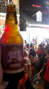 So after relaxing over a dinner of fresh oysters and crab cakes, we were feeling a little regenerated and decided to go party the rest of the night on Bourbon Street. I am no longer in my early 20’s, so consuming large amounts of sugar laced Hurricanes would send me into an all-day hangover, which are to be avoided at ALL COSTS! So what is a foodie to do? Drink the city’s finest beer, Abita!