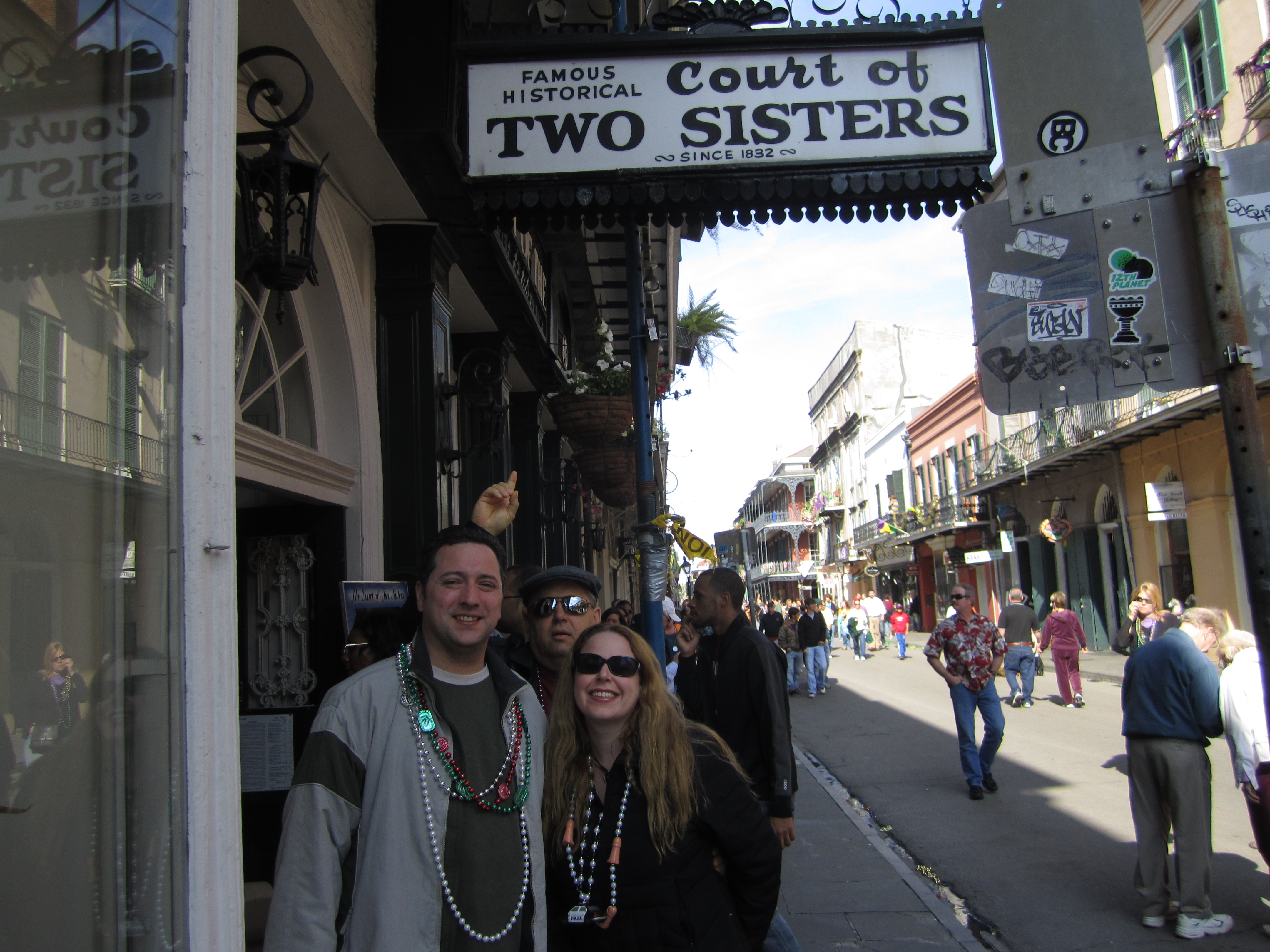 One of the highlights of our trip was attending a balcony party that was being hosted by Maxim Magazine. As with all of the French Quarter, Bourbon Street is lined with 2nd story balconies, which are the epicenter of Mardi Gras bead throwing shenanigans. From the ground, folks are engaging in a timeless tradition of asking the balcony folks for beads by reaching their hands in the air, begging and flashing their tatas. In contrast, the people on the balconies have the power by displaying “high end” throws and tempting the groundlings to show flesh in exchange. Long story short is that Mardi Gras is a different experience from the balcony and must be experience at least one in your life…strictly from a cultural learning experience. 😉