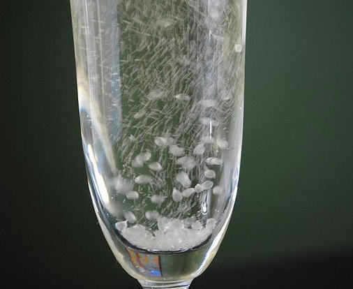 1) Inside champagne cocktails, with the bubbles floating the lime sacs to the top and back down, just like a lava lamp.