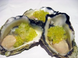 Finger Lime sacs make a great garnish to oysters. Image from MorselsandMusings.com