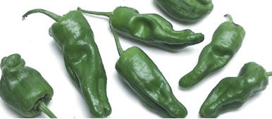 The Padron chile is like the Anaheim with a sweet flavor when cooked. These two inch chilies are two inches long and are generally mild in flavor and heat; although there is the occasional fiercely maverick in the mix. The Padron is the most popular chile in Europe and are grown in the Galicia Region of Spain. In Spain they are served as a tapas, often stuffed with cheese and sauteed in hot oil resulting in blistered skin and oozing hot cheese. I expect that you will see this European version as a high-end replacement to the Jalapeno Popper.