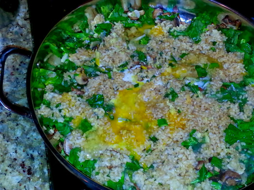 Step 7) Add brown rice, and thoroughly integrate ingredients.