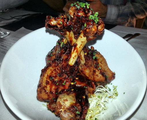 My favorite dish are the crispy duck wings. The duck wing were given a quick deep fry to crisp the skin and then slightly leathered in a a Meyer lemon, honey and chili sauce. They were garnished with a sprinkling of chives. This was a remarkable dish with the rich and savory duck wing creating a full mouth umami that is broken up with sweet, tangy and spicy sauce. If you are like me you will find yourself liking your fingers.