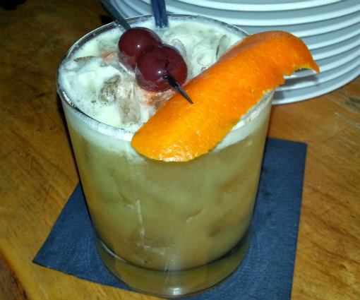 This is a nice bourbon drink that has a slight sizzle from the Serrano chili and bright flavors form the fresh lemon juice. The egg white created a nice foamy head to the cocktail.