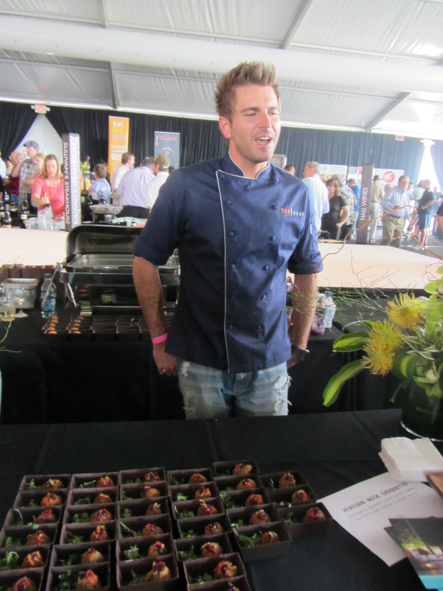 than five hours I was able to try at least one of every dish being sampled, drink at least two wines from each winery, and watch three cooking demos. Although, truth be known, after a full day of eating food and drinking wine, everything starts to taste the same. This is when the standouts make themselves obvious. I have highlighted some restaurants, vendors and wineries that are real standouts that made me say, “Wow that was good!”