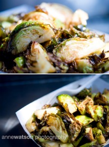 There I was innocently standing in line one day to order my lamb burger from the Home Skillet truck, when I heard all the folks in line ranting about the Brussels sprouts. I must have scrunched my nose into the air when they said the word “brussel sprouts” because soon after an attractive woman came up to challenge me