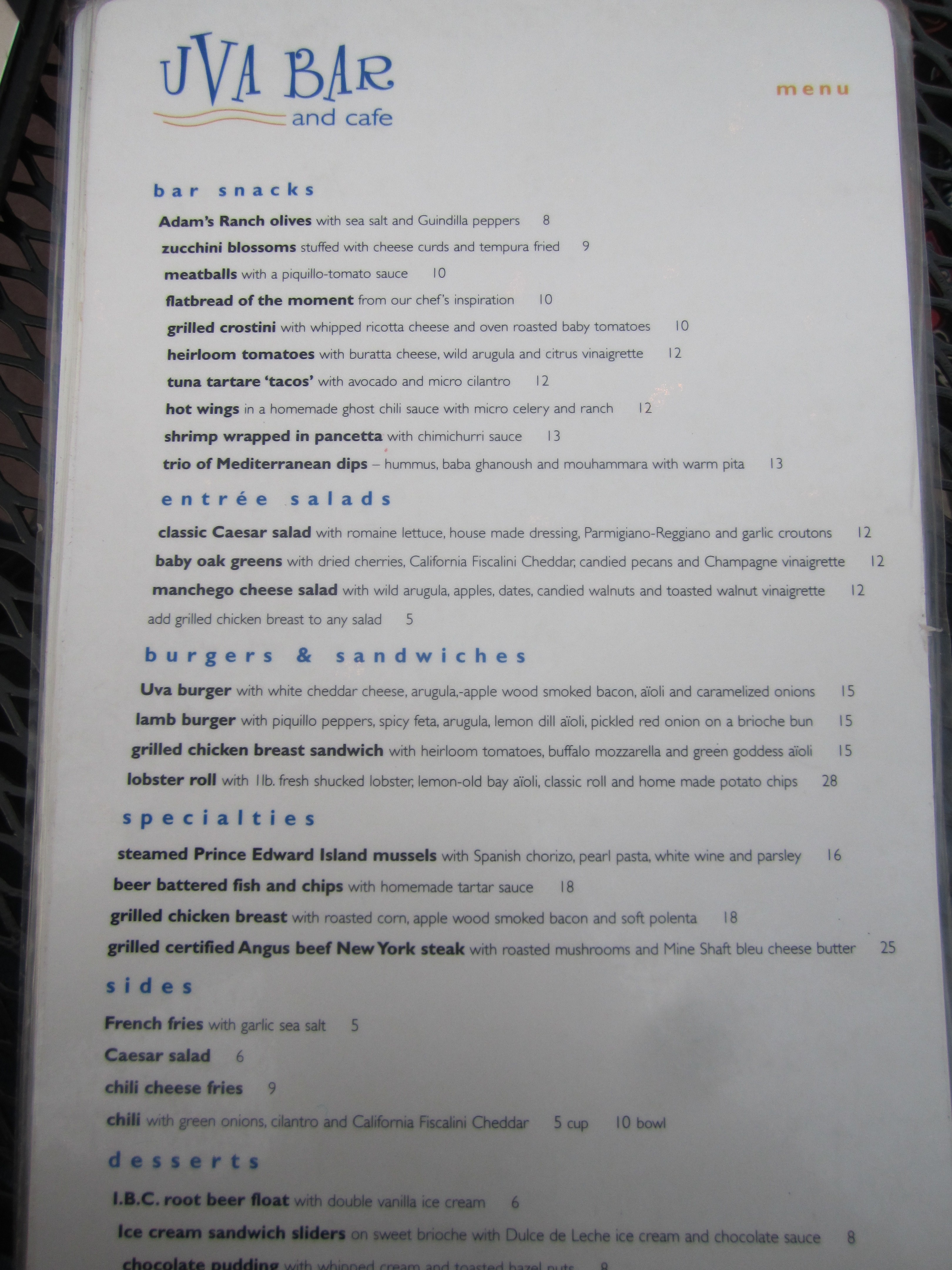 Overall I give the Uva Bar a 3.5 out of 5, meaning I will come back here again especially if I want something casual and with outdoor seating. Although a 3.5 also means that I might look at other options including going to some other restaurants in Downtown Disney. The only thing keeping me from giving the Uva Bar a 4 rating was the epic failure of quality control on the manchego salad.