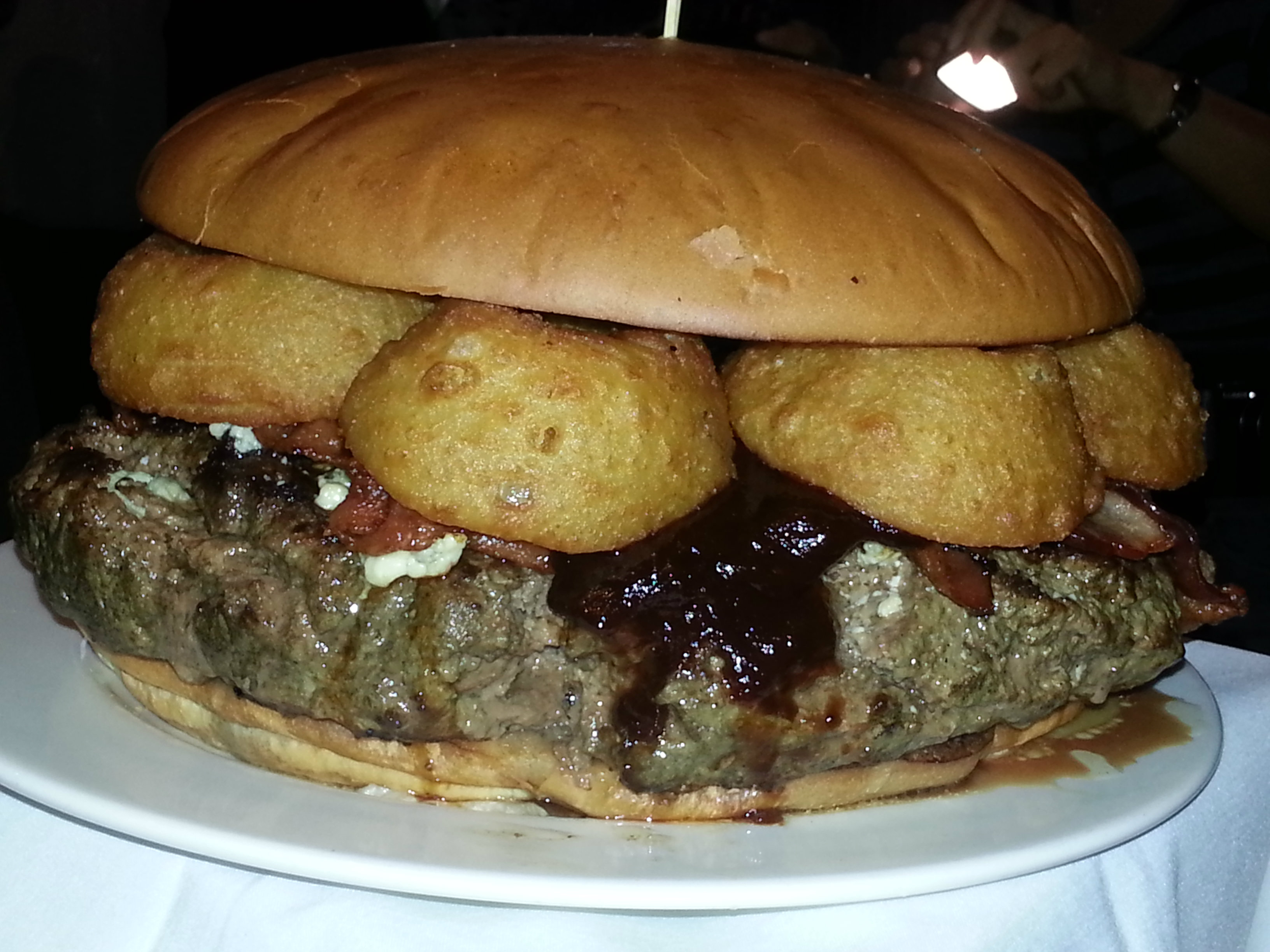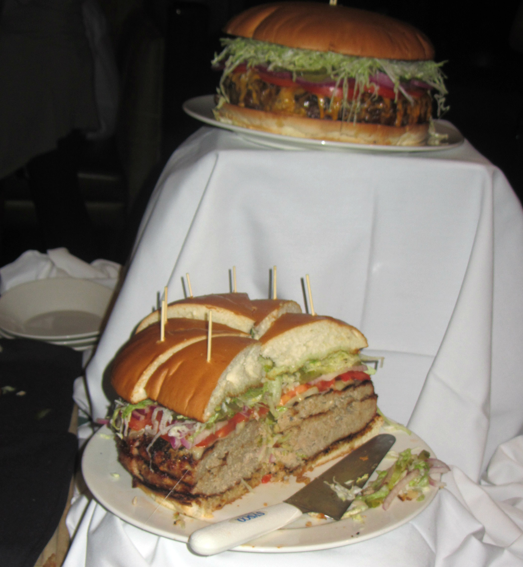I dare Joey Chestnut or Adam Richman to try this burger. I actually thought I would be able to tackle this in an eating competition, but I was completely wrong after my third slice. Do you think you have what it takes to eat this burger?