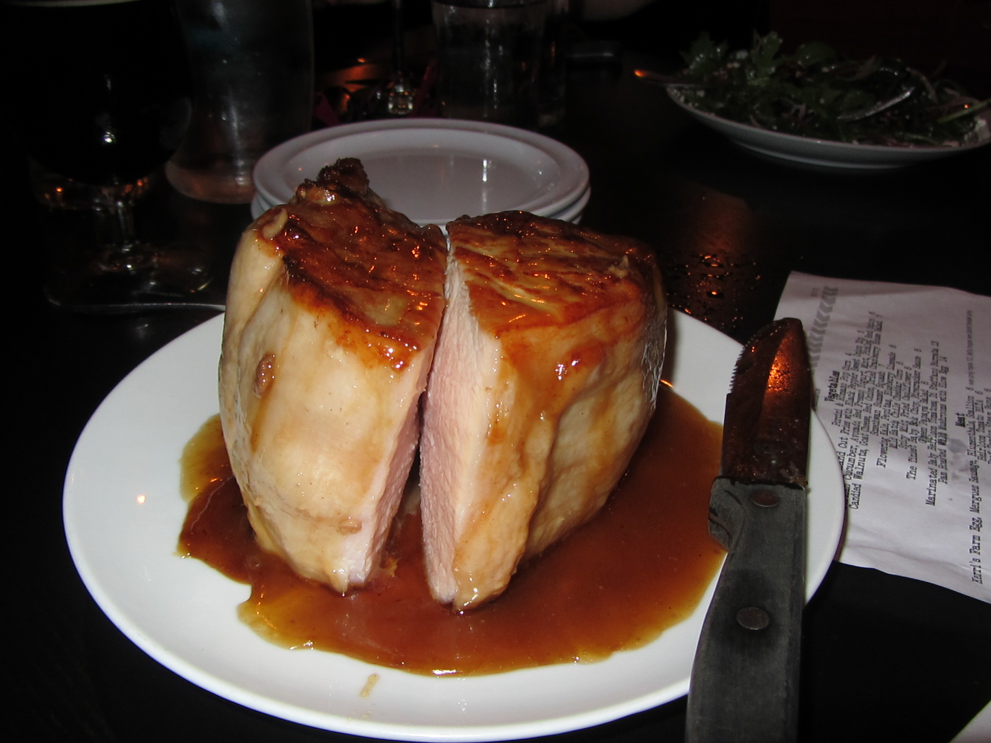 One of the most impressive dishes I have experienced, both in terms of flavor and presentation. I had heard many positive things about this dish, so of course I had to try it! With a price tag of $24, I was really hoping it would be fantastic. The Playground met my expectations and then gave me multiple foodgasms. What came out was a cut of pork chop about 5 inches tall and drowning in its own juices and maple glaze. The pork is sous vided to ensure an even cook and then pan sauteed with the maple sauce. The result is a savory and sweet pork shop that has broad appeal. We had three taste testers at our table: a pork chop aficionado (Peggy), pork neutral eater (me), and a pork hater (Daniele). Peggy’s eyes rolled to the back of her head with pleasure and she was not mentally available for a few minutes after her first bite. I took a bite and was pleasantly surprised by the tenderness of the meat and sweet juiciness locked into the muscle. Daniele, the pork hater, simply said, “This is the first piece of pork that I have ever liked.” This pork chop was juicy and had a wonderful maple flavor that accentuated the natural pork flavors. I think this is one of their best items and has been on the menu since opening day.