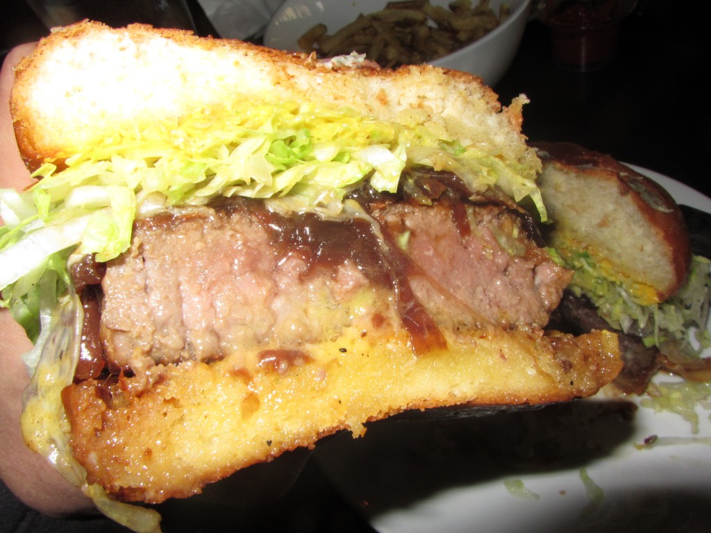 The patty is then cooked to medium-rare (mostly pink throughout) to ensure that the burger is juicy and that it retains its natural flavors. No modifications allowed! You might notice that this item is not on the menu. Why? Chef Jason Quinn refuses to modify the burger . . . which is required by law if placed on the menu. Trust me — it was really good!