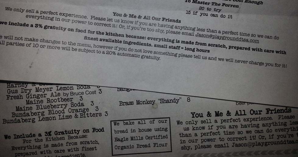 If you were to ask me to describe The Playground, I would use these following descriptors: Chef Centric, New American, small plates, ingredient-driven, penchant for experimentalism, craft beer Mecca, NO MODIFICATIONS. According to Jason, the core values of the restaurant are “Fresh, exciting ingredients prepared with skill, passion and love; a constantly changing menu; and the stubborn belief that each dish is an integrated composition that we will not alter.” What I like about this restaurant concept is that I am educated about food every time I visit The Playground.