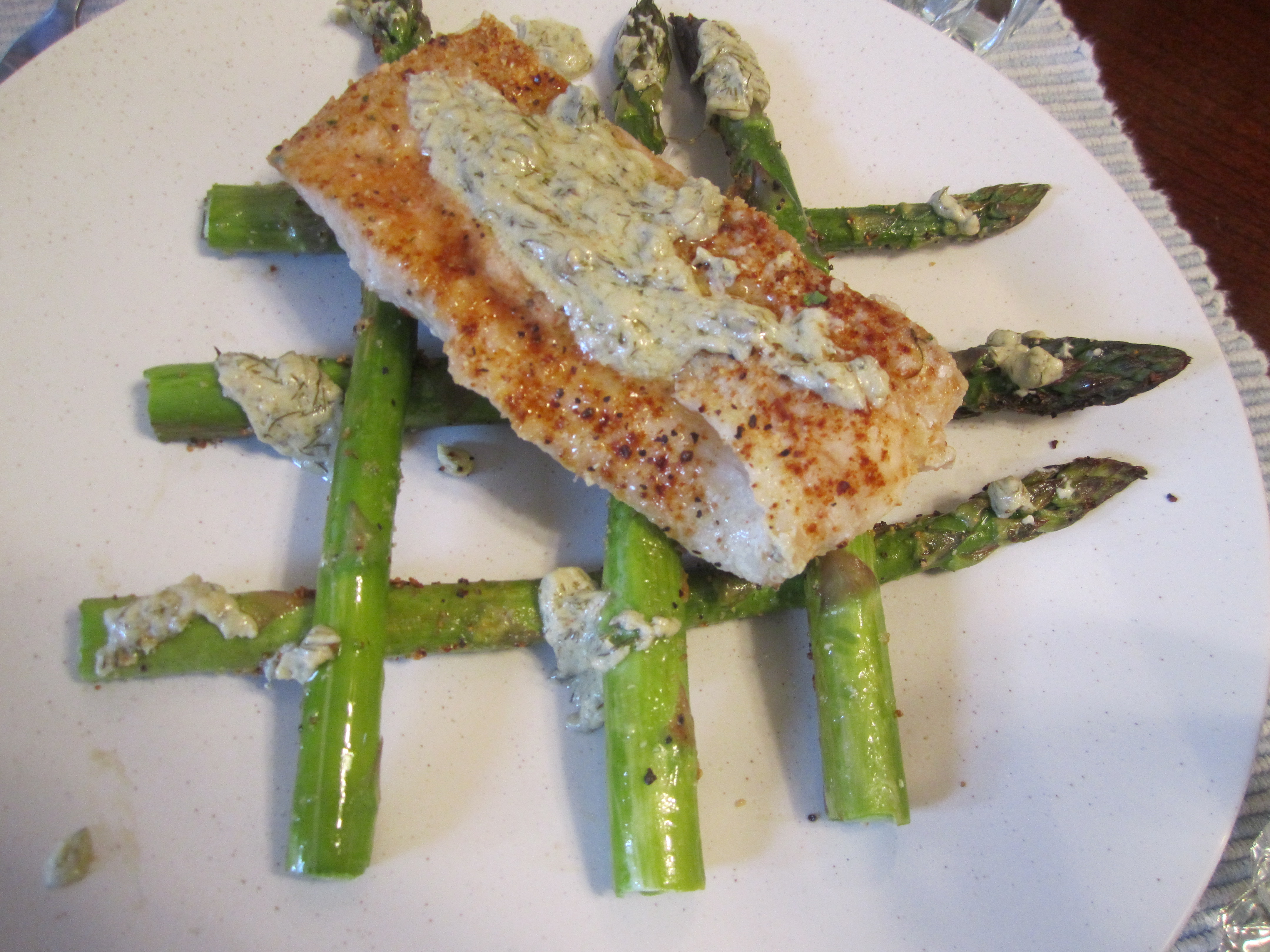 Just kidding, in all seriousness I made this fish recipe out of Rock Fish, a white fish commonly found of the shores of New York (close to Philly) and a Blue Cheese for the Sauce. Still don’t get it? Well then, I suggest you rent Rocky 4 where he goes against the Sasquatch Russian named Roko and his hot wife, Natasha or something like that. In this awesome sequel, Boris beats the crap out of Rocky and leaves the Italian Stallion black and blue. This recipe features Rock Fish, blue cheese, and Italian Cream Cheese and some asparagus spears.
