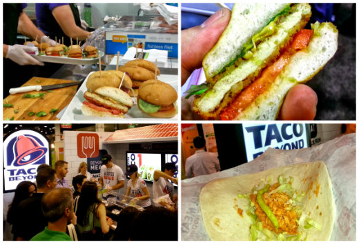 The vendor who had the best marketing campaign at the show was Beyond Meat, who sampled their “chicken” strips and ground “beef.” They set up their booth to simulate a Taco Bell restaurant and made a call to action for Taco bell to carry meat alternatives.