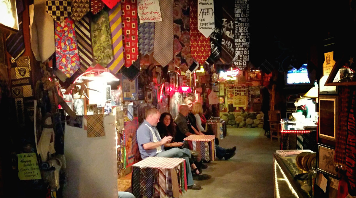 The most notable guest who had their tie cut off was Richard Nixon. They still have the tie and a picture of the snipping in the waiting room. Every inch or wall space, ceiling space and exposed beams are covered in 40 decades of ties.