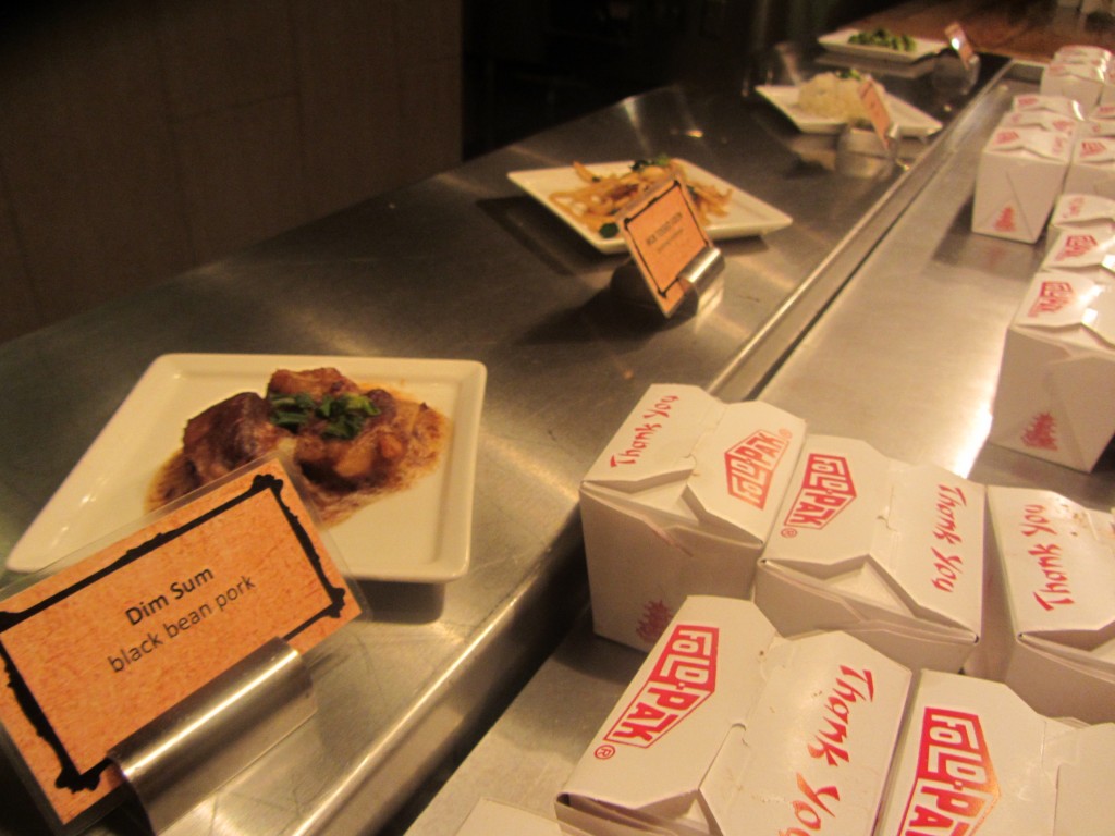 Wicked Spoon mixes in some playful presentations of their Chinese dishes. Here five of their Chinese dishes use take out boxes.
