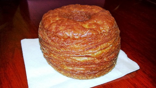 The cronut has flaky layers and crisp exterior