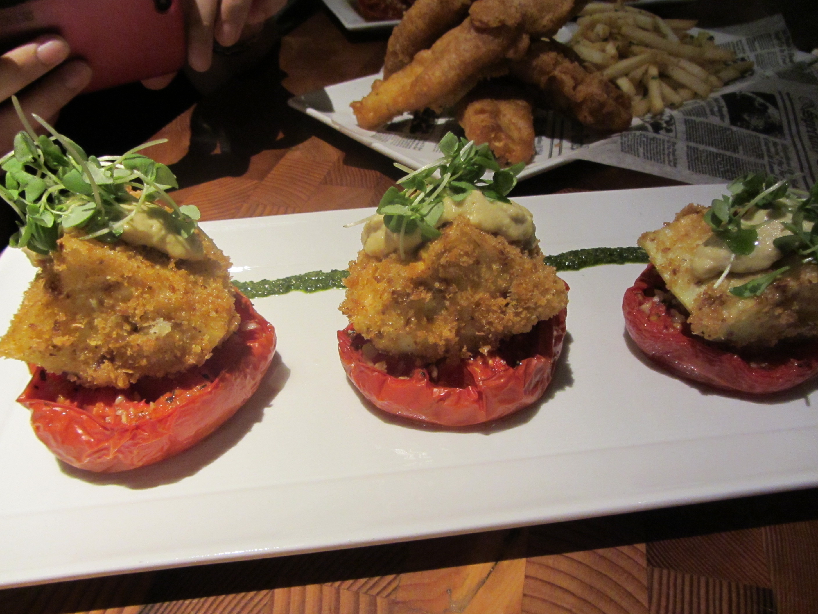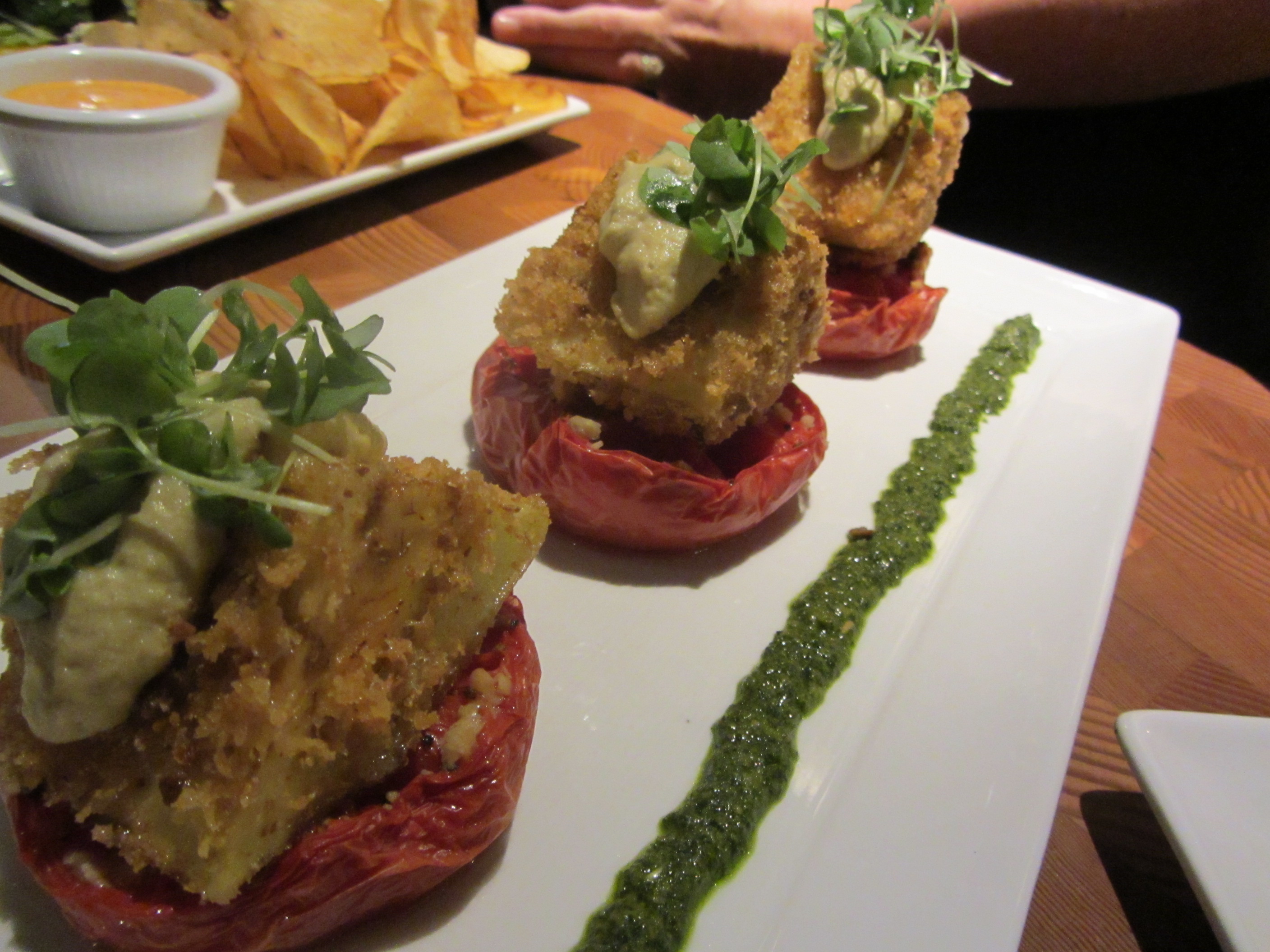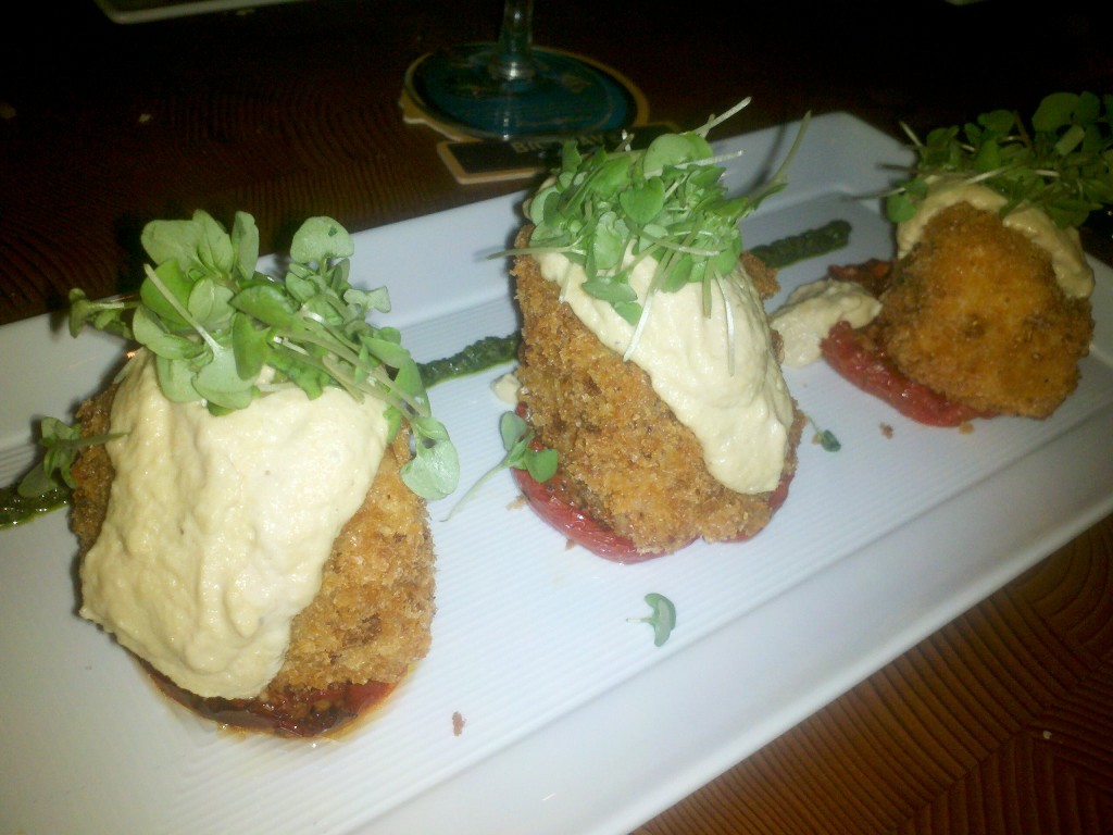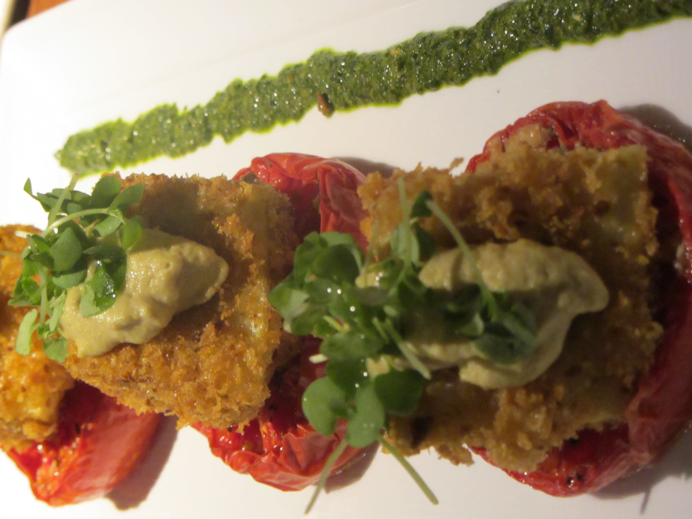 Panko Crusted Eggplant Parmesan Fondue – This dish was one my favorites. Chunks of eggplant are tossed in white truffle and panko and crisply fried. The fried eggplants are topped with a dollop of “cashew parmesan fondue.”