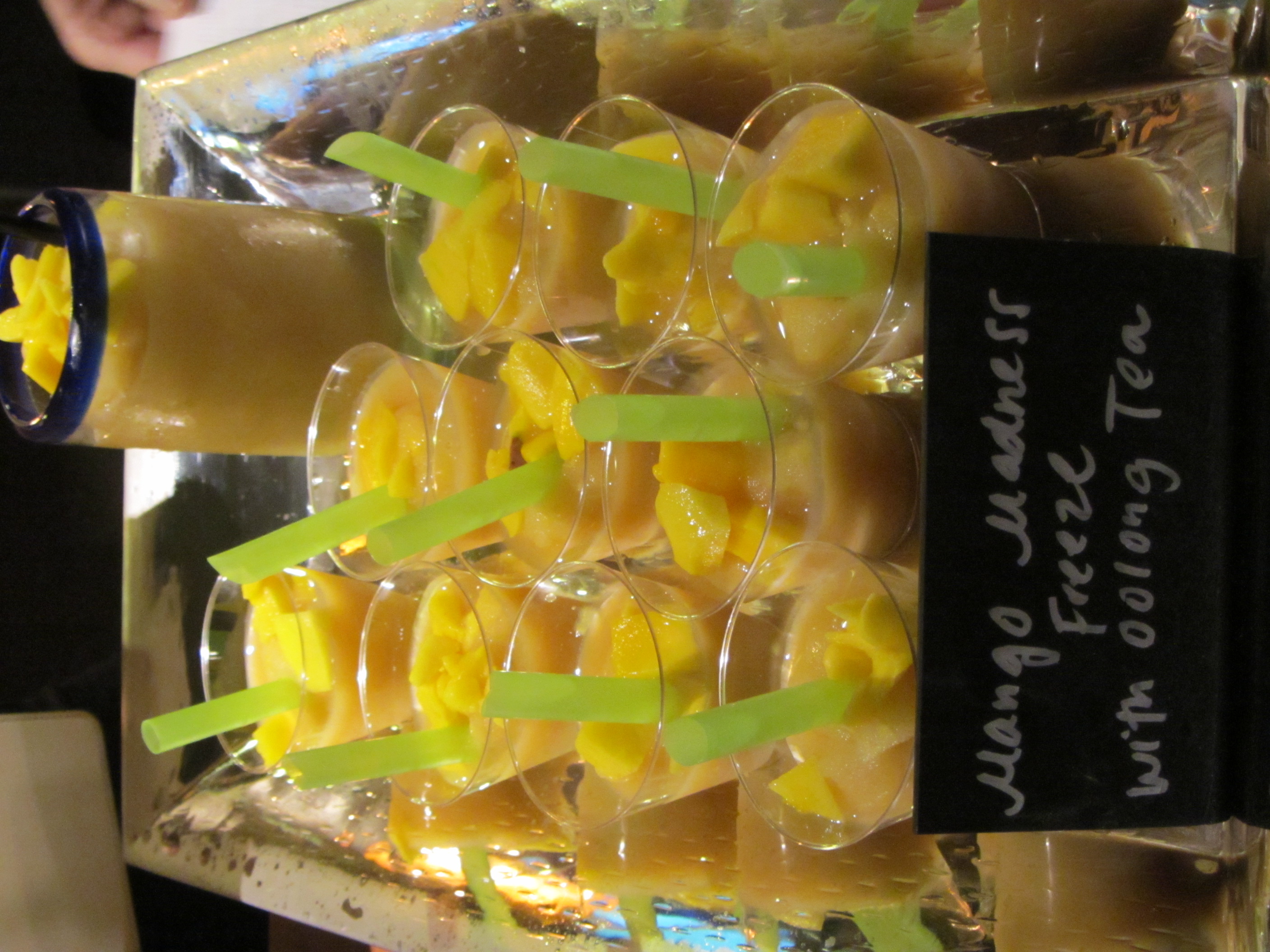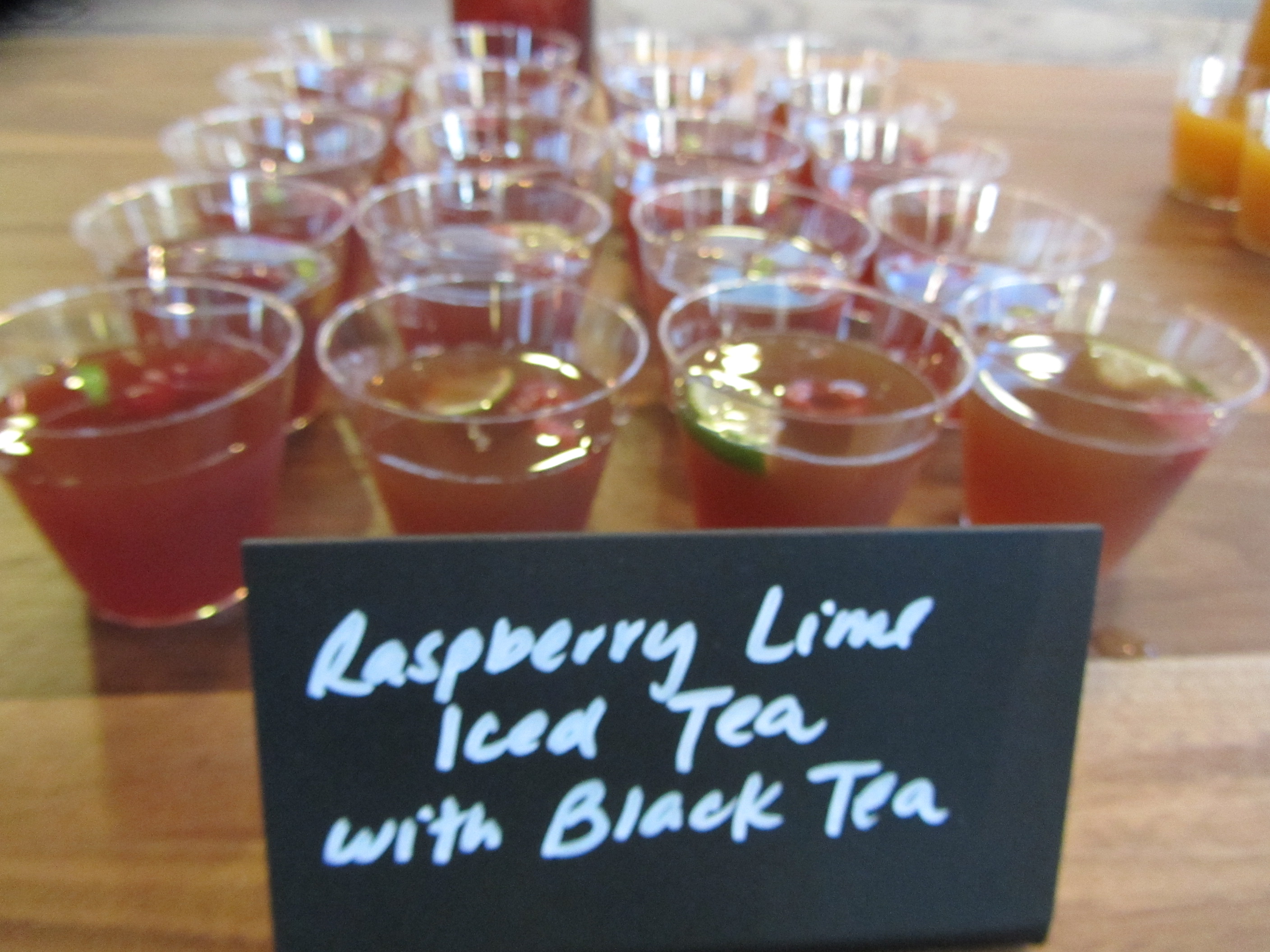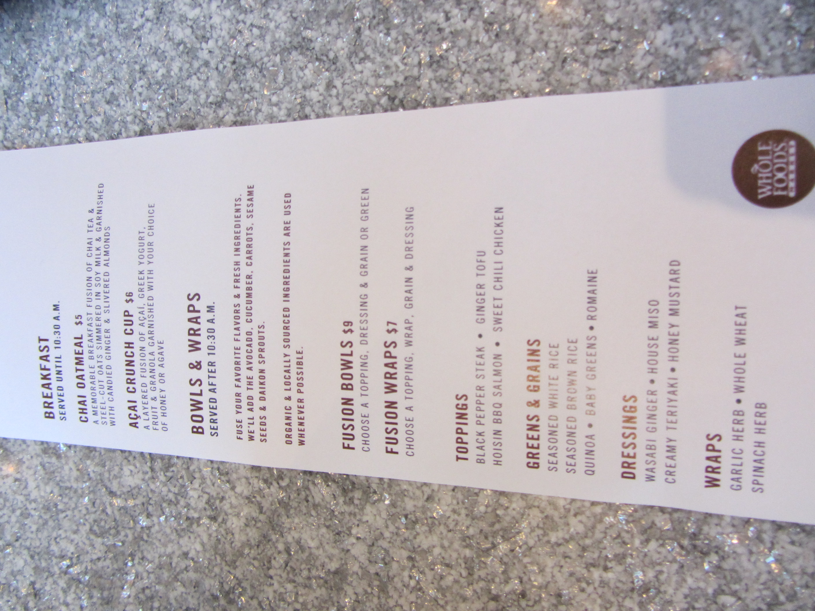 Whole Foods’ Beehive Tea Market is a tea-centered bar at the front of the store. Their drinks are based on teas like black or oolong and are infused with a blend of fresh organic fruits. For example, I tried about four of the tea based fusion drinks. My favorite Iced Tea was the Strawberry Lime Sparkler, made with Black Tea, Strawberry and Fresh Lime and a sprtiz of something effervescent. This drink was very refreshing a light, perfect for sitting on the patio.