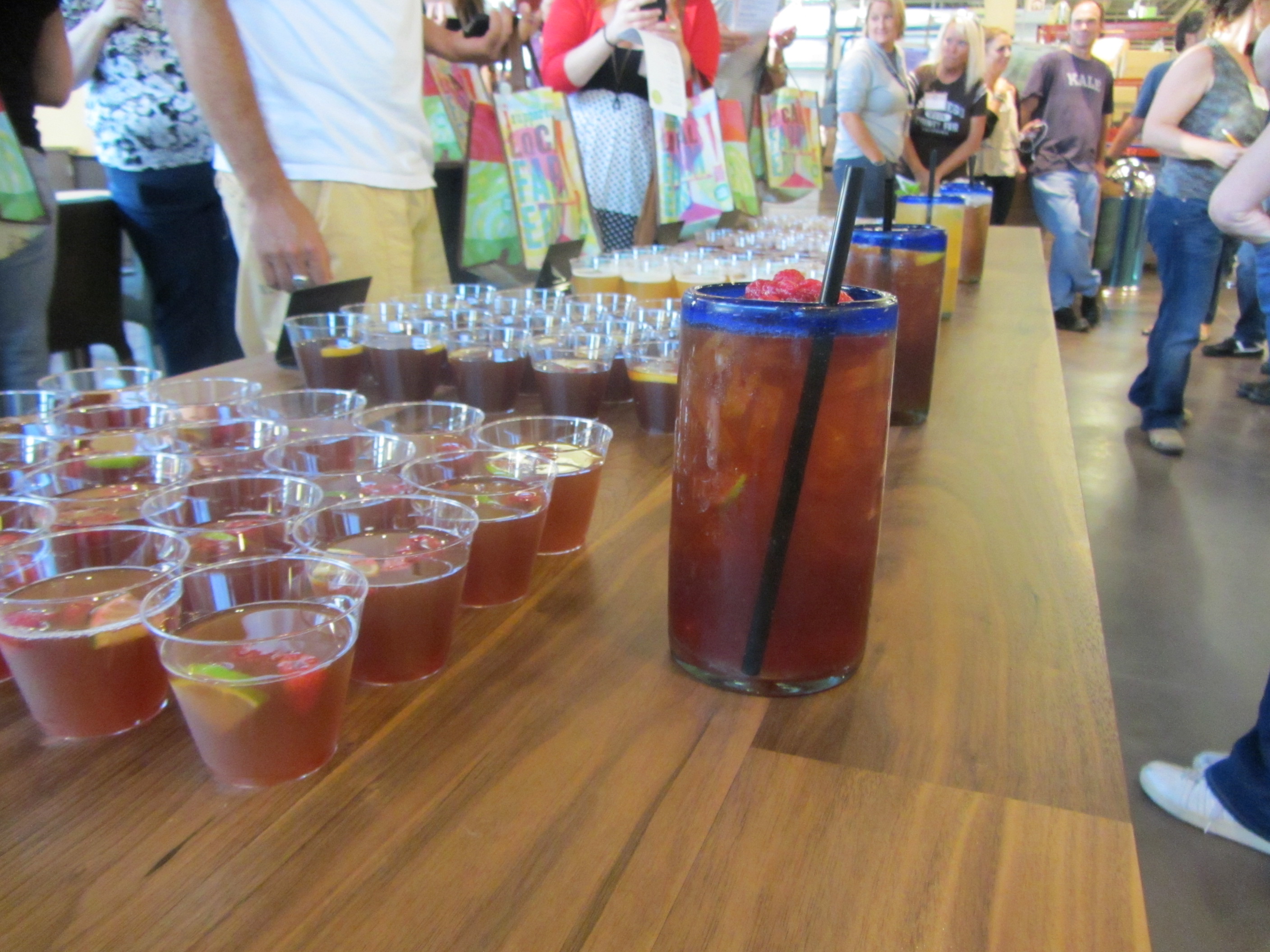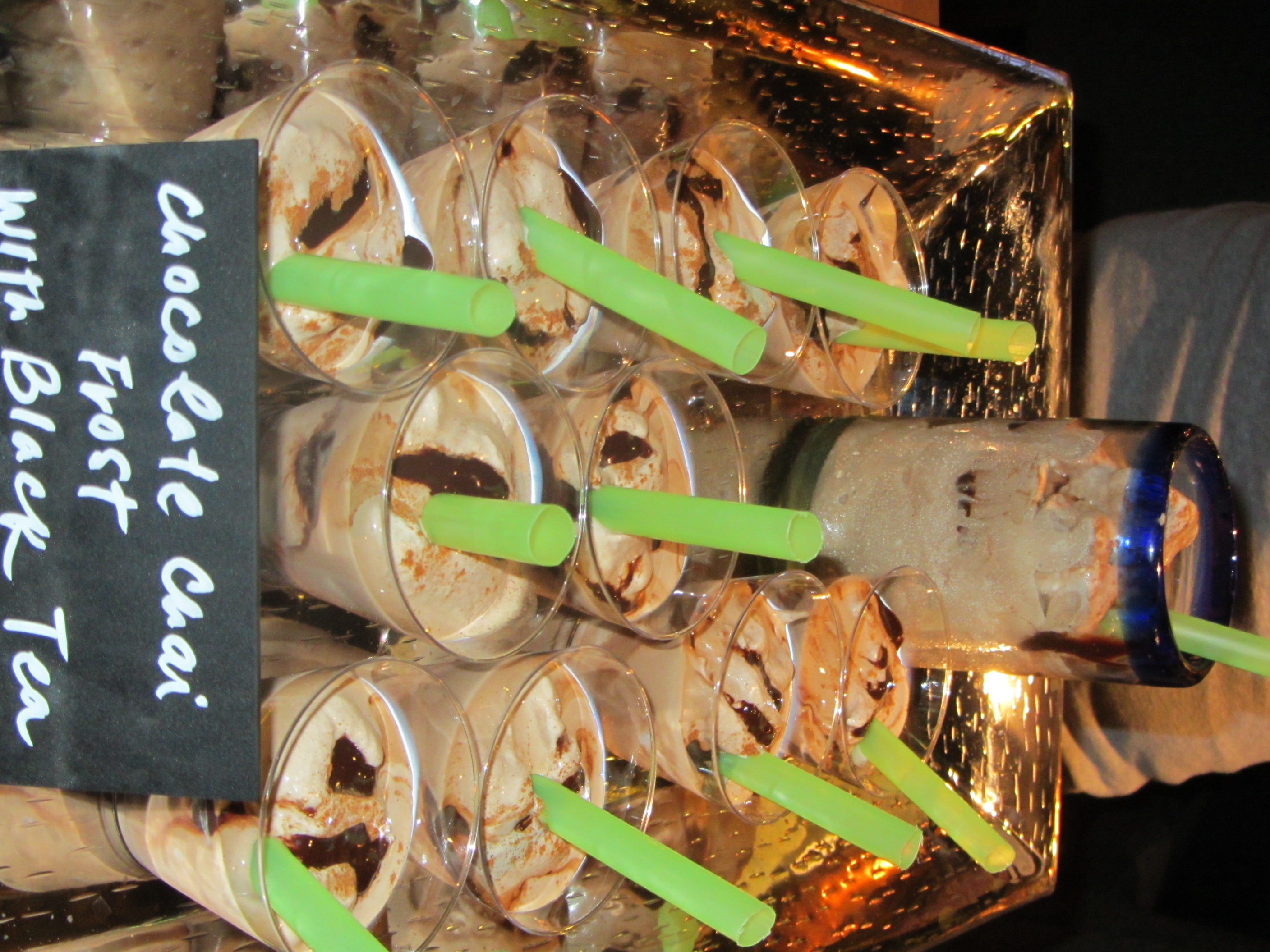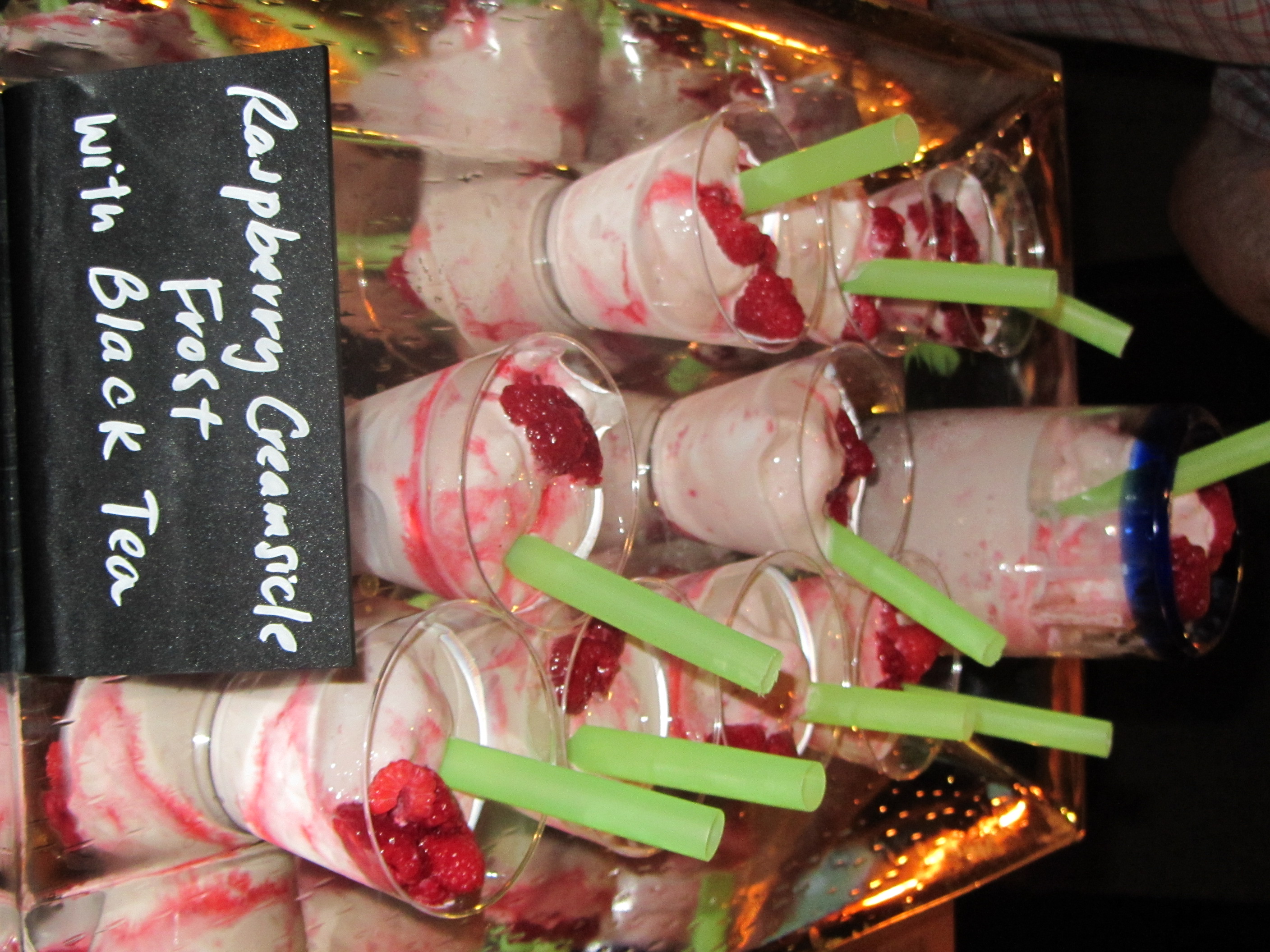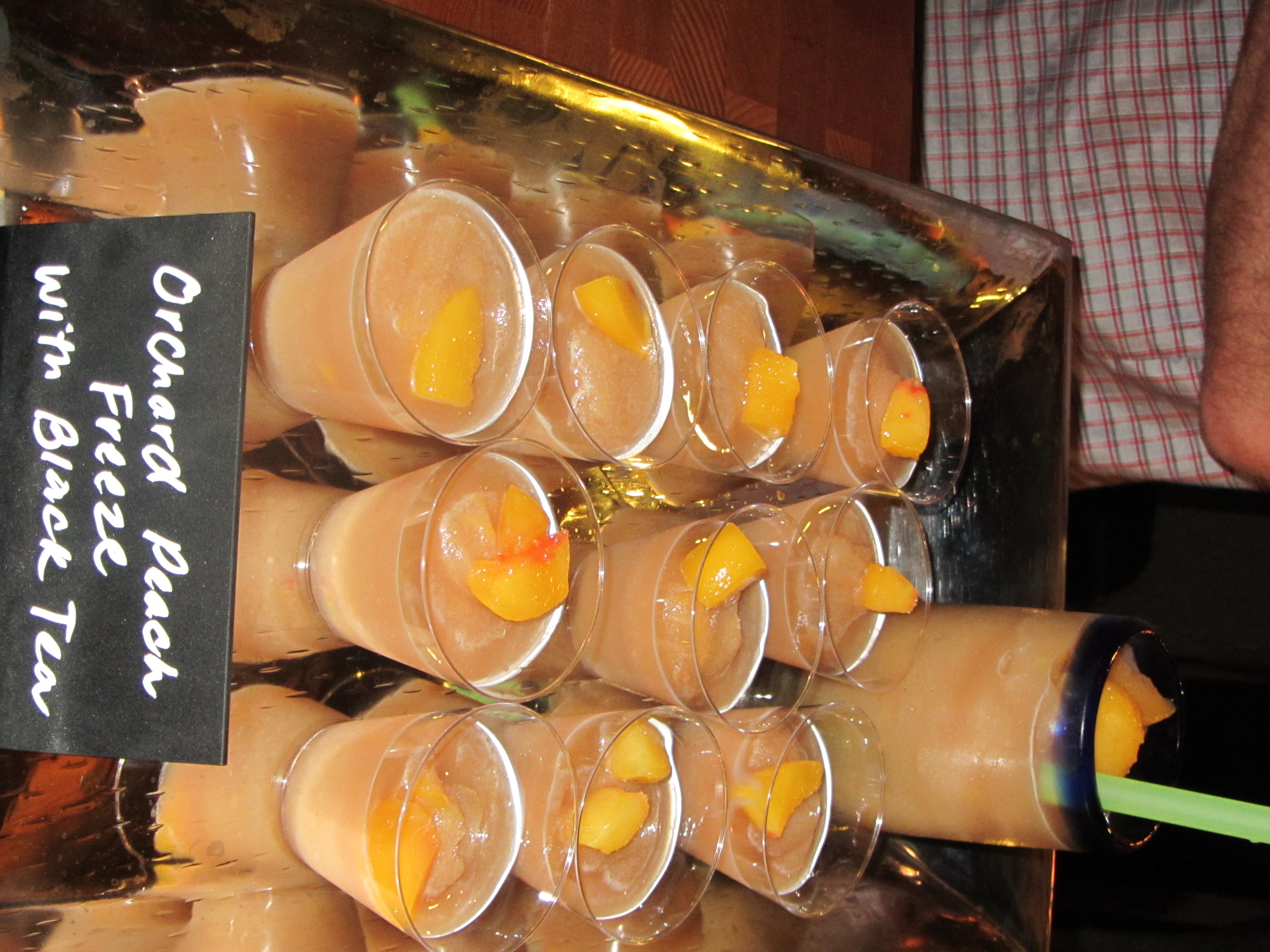 Whole Foods’ Beehive Tea Market is a tea-centered bar at the front of the store. Their drinks are based on teas like black or oolong and are infused with a blend of fresh organic fruits. For example, I tried about four of the tea based fusion drinks. My favorite Iced Tea was the Strawberry Lime Sparkler, made with Black Tea, Strawberry and Fresh Lime and a sprtiz of something effervescent. This drink was very refreshing a light, perfect for sitting on the patio.