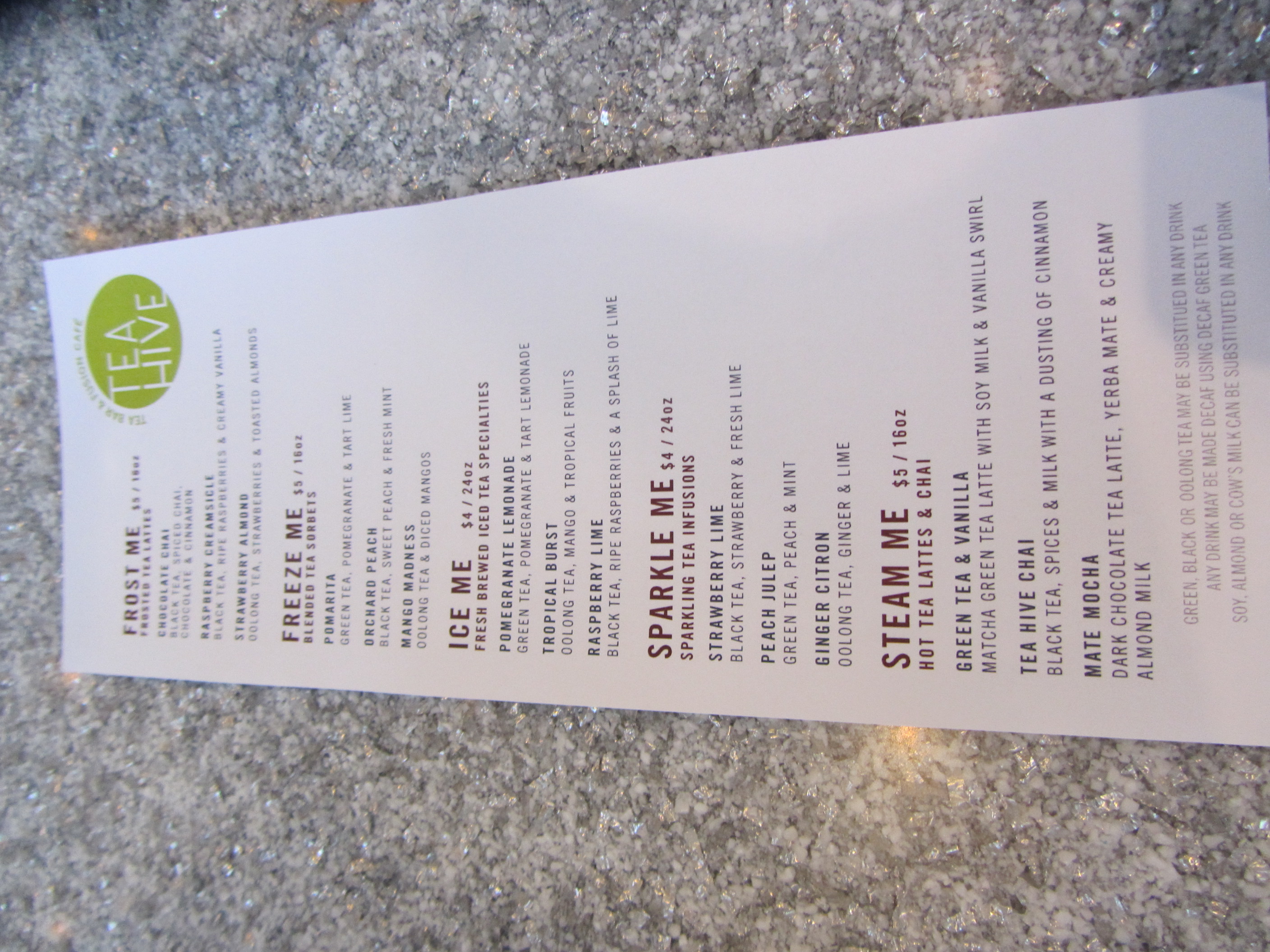 If you are looking for something a little more “adult,” the beehive also offers some alcohol-infused tea drinks and several draft craft beers. Attached to the beehive is their outdoor patio, complete with over sized patio chairs, sofas and a fire pit. The manager confirmed that you are allowed to purchase alcohol in the store and drink it on their patio. Here is what I imagined: ordering some refreshing tea drinks, picking up a bottle of wine, chocolate and cheese from the store, and enjoying a picnic on their spacious patio.