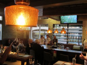 Probably the crown jewel of the Whole Foods store — what other grocery store has a gastropub? This restaurant has a rich focus on food, micro-craft beer and wine, as well as a stylized subtle throwback to prohibition era Harlem. The look of prohibition era Harlem isn’t obvious, but more subtle with exposed brickwork, slightly industrial pendulum lights that are dressed with yellow glass, and the center piece: a solid mahogany bar