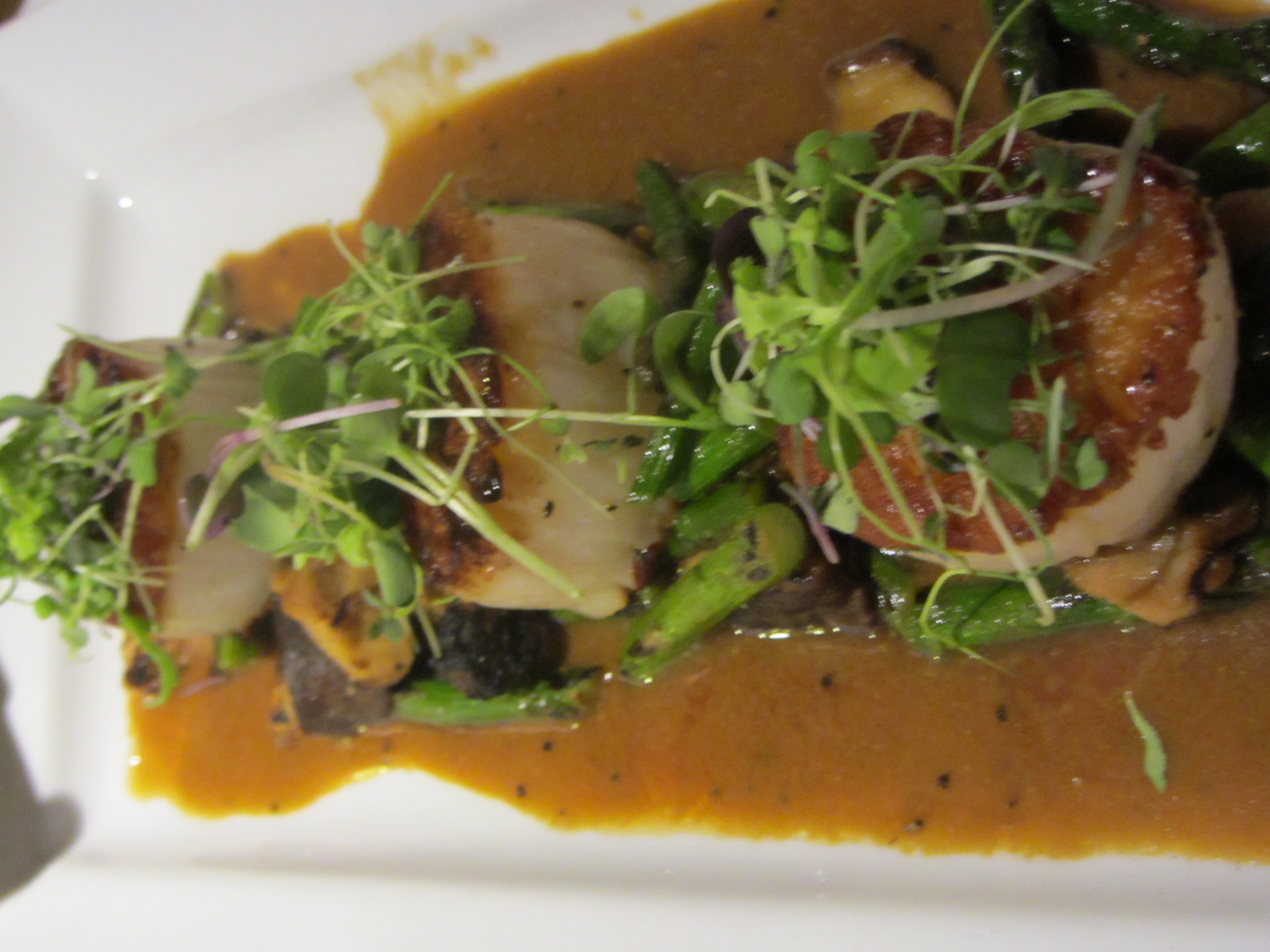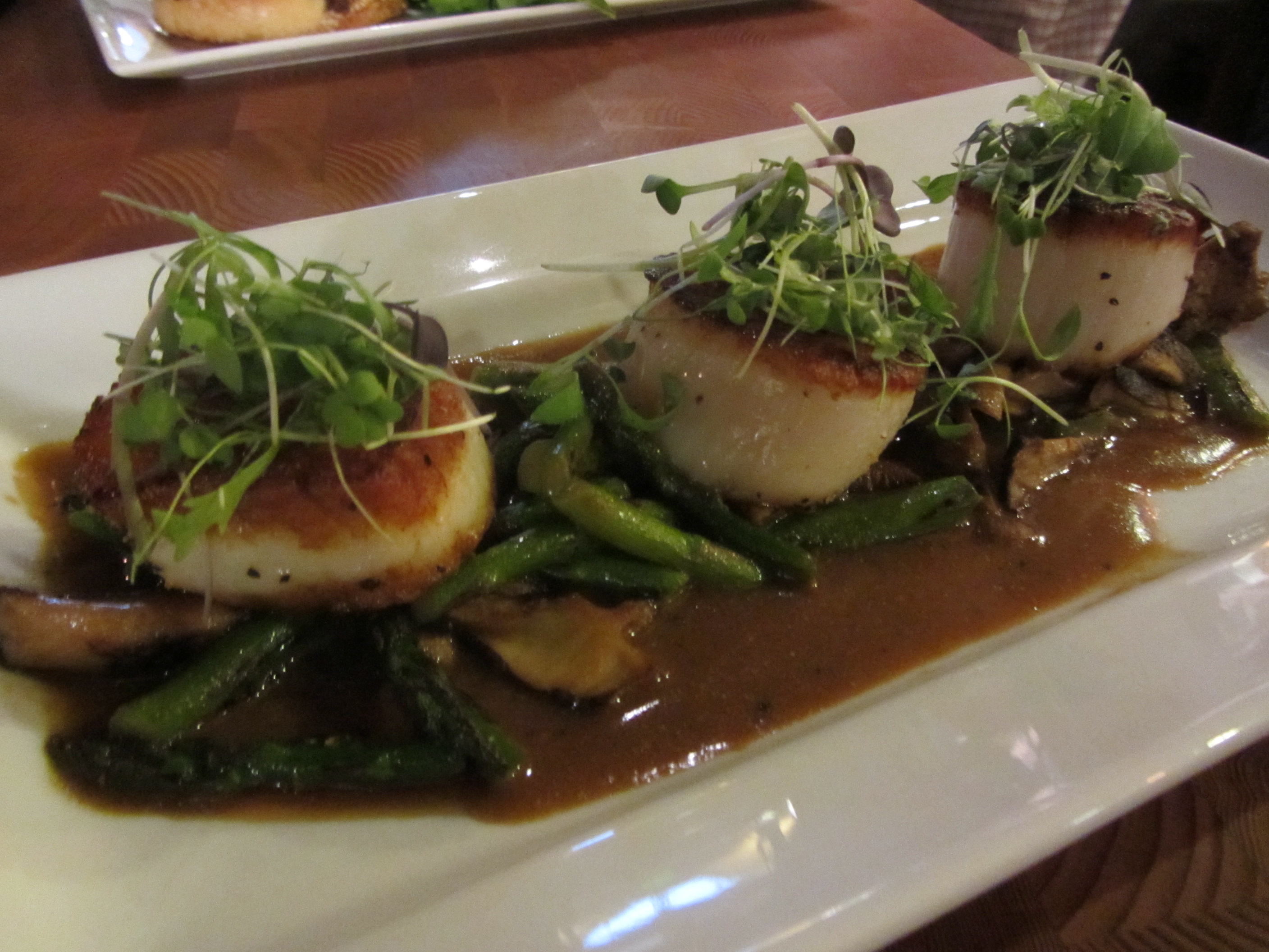 Wasabi Pepper Seared Scallops - One of the best dishes on the menu, and despite the name, the dish was not spicy. Fresh scallops are seared and topped with micro greens. They are served with a forest of mushrooms and asparagus sauté. Great flavor combination from the sweet protein of scallop with the very subtle wasabi pepper.