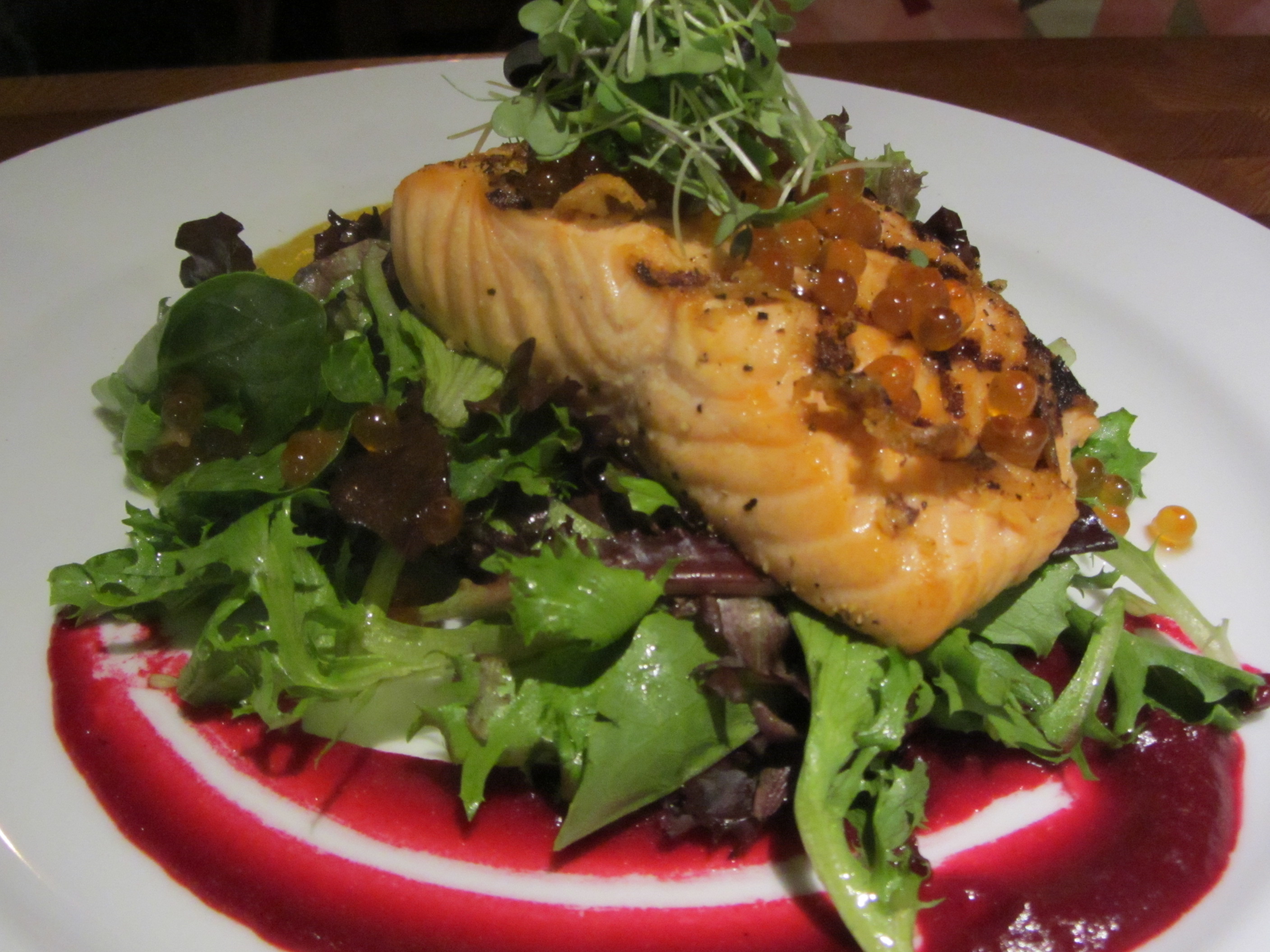 Gingered Atlantic Salmon – One of the few exceptions on the menu where I thought the food was a little boring. Although the fish itself had great natural flavors, I felt that it needed a lot more seasoning or a marinade. The salmon is pan-seared to retain its natural juices and served with radish salmon roe. On the side is an organic salad that is dressed with Peruvian corn vinaigrette.