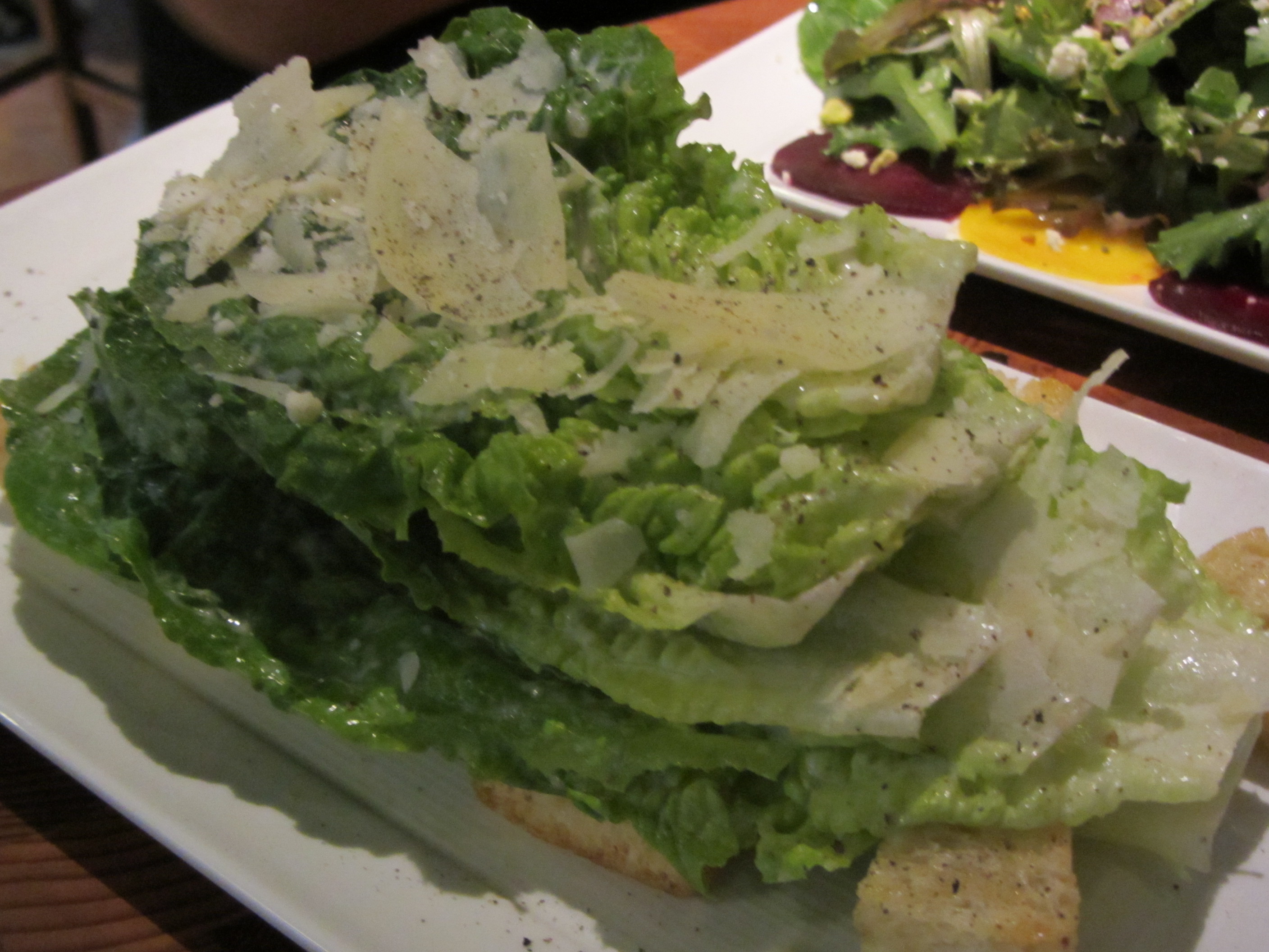 SoPac Caesar -Rough cuts of romaine stacked with parmesan and Caesar dressing and croutons.