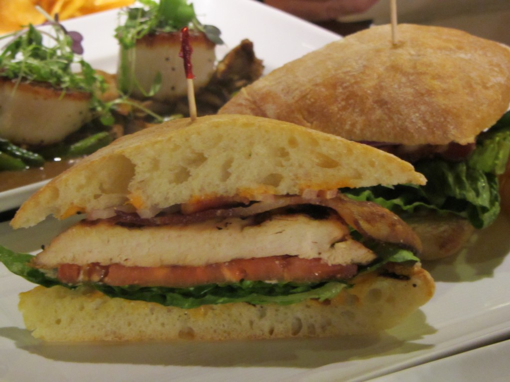 Chicken Club – Grilled Pittman Farms chicken breast and house smoked bacon with lettuce and tomato on a chibata roll. I usually do not select sandwiches because I think they will be dry, but this one is worth trying.